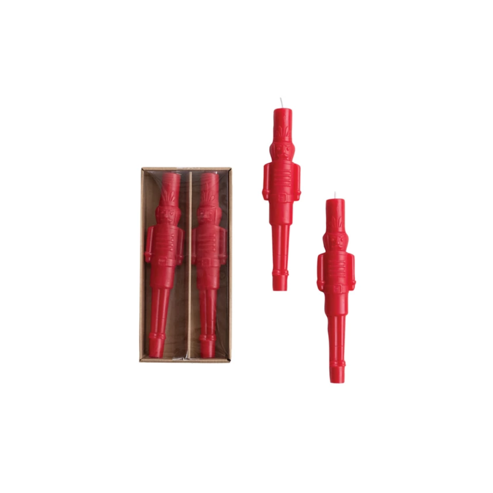 Unscented Nutcracker Shaped Taper Candles in Box, Red, Set of 2
