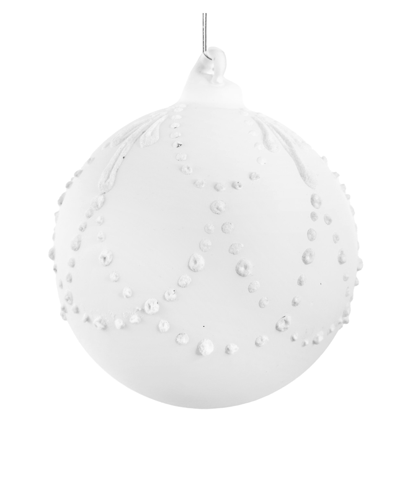 Glass ball white mat with dotted garlands 8cm