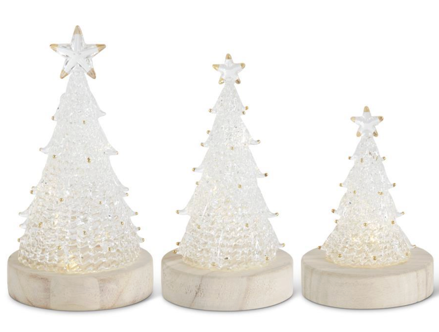 Handcrafted Spun Glass LED Christmas Trees w/Timers
