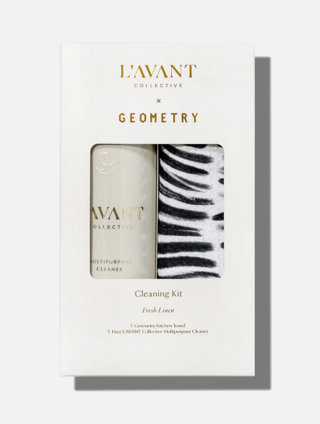 This luxury cleaning kit set features a custom-designed Geometry kitchen towel, crafted to complement L’AVANT’s Fresh Linen Multipurpose Surface Cleaner. Blending luxury, sustainability, and function, this collaboration delivers high-performance cleaning essentials with effortless beauty—because every detail matters.