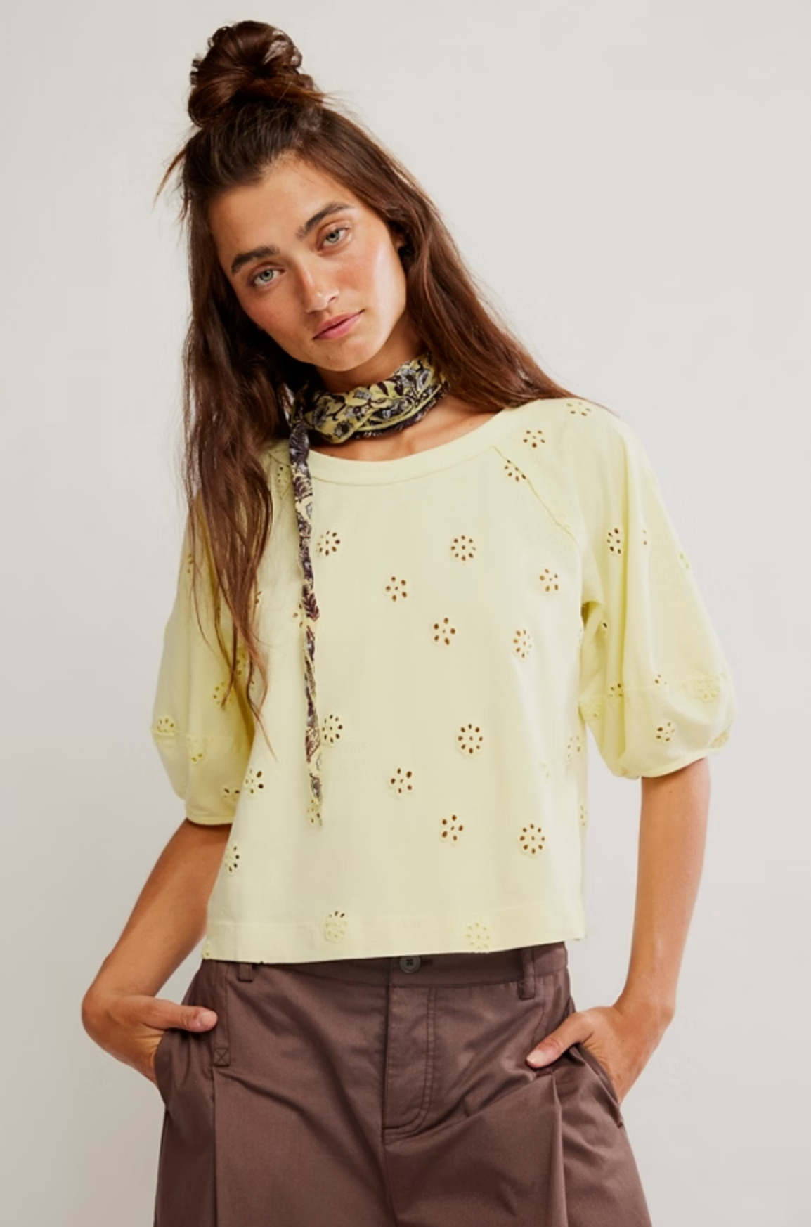 JESSIE EYELET TEE / LEMON WATER COMBO