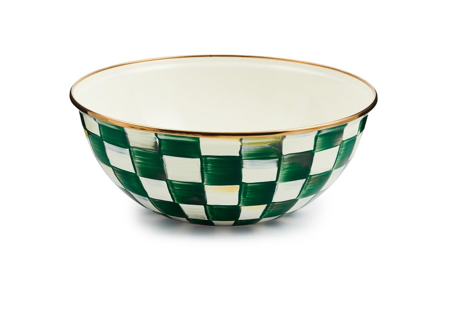 When it comes to our Emerald Check Medium Everyday Bowl, the name says it all. The perfect size for year-round use, it’s decorated with hand-painted green checks on a heavy-gauge, hand-glazed steel underbody, rimmed with bronzed steel. Nest it with the Small, Large, and Extra Large Emerald Check Everyday Bowls, and you’ll be ready for every kitchen task.