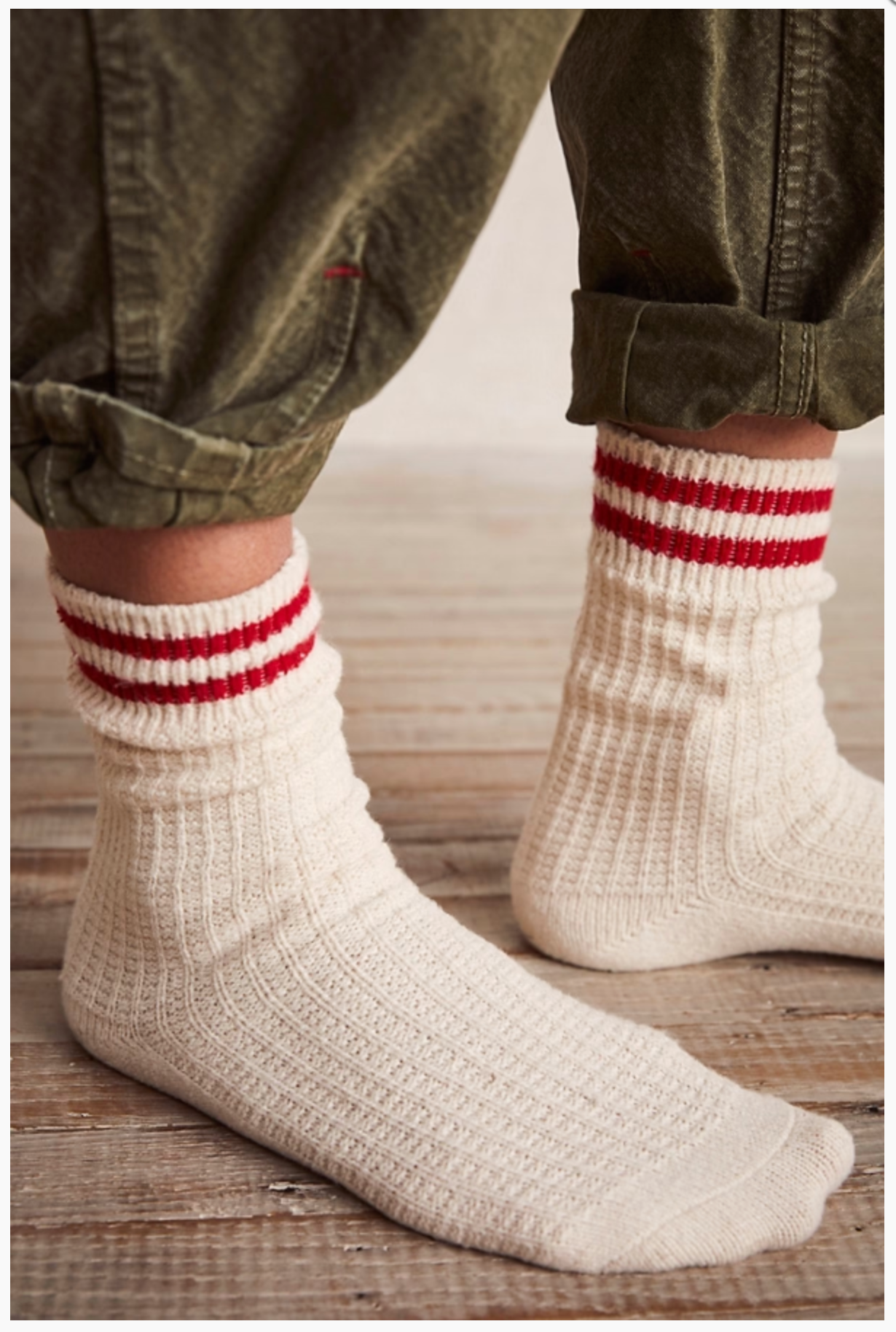 JACKSON COZY STRIPE SOCKS / CLASSIC RED