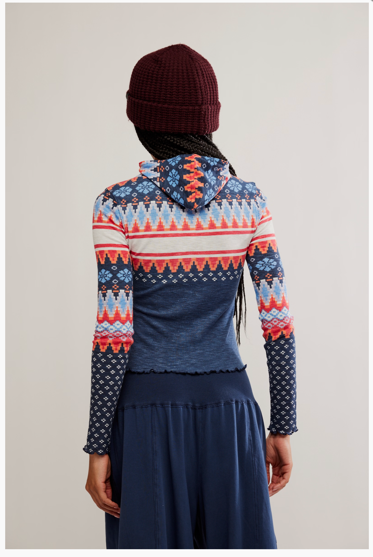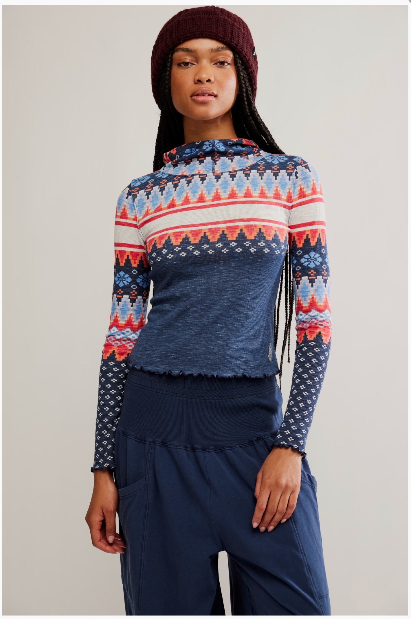 PRINTED BREATHE EASY LONG / PLAID FAIRISLE NAVY