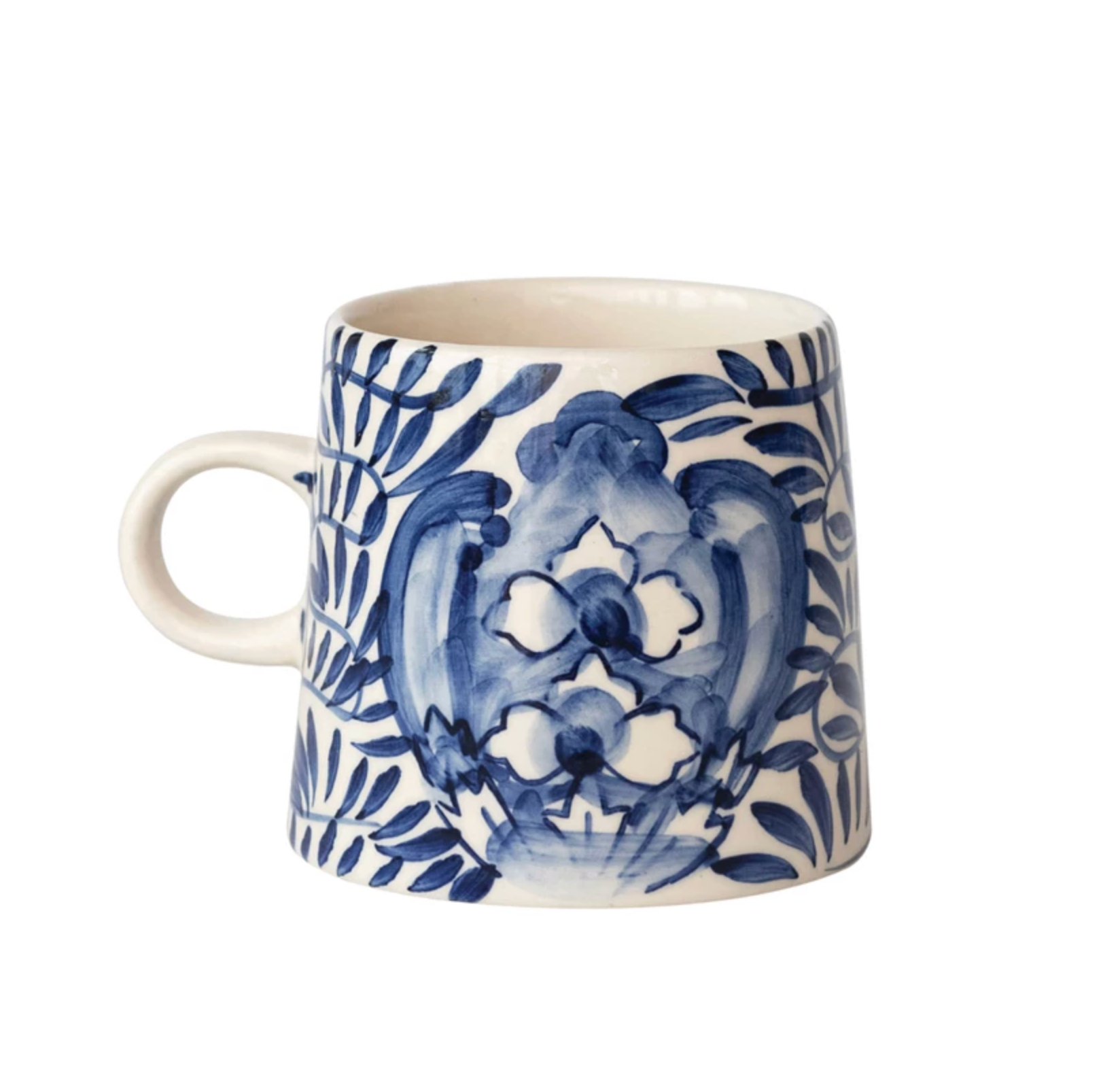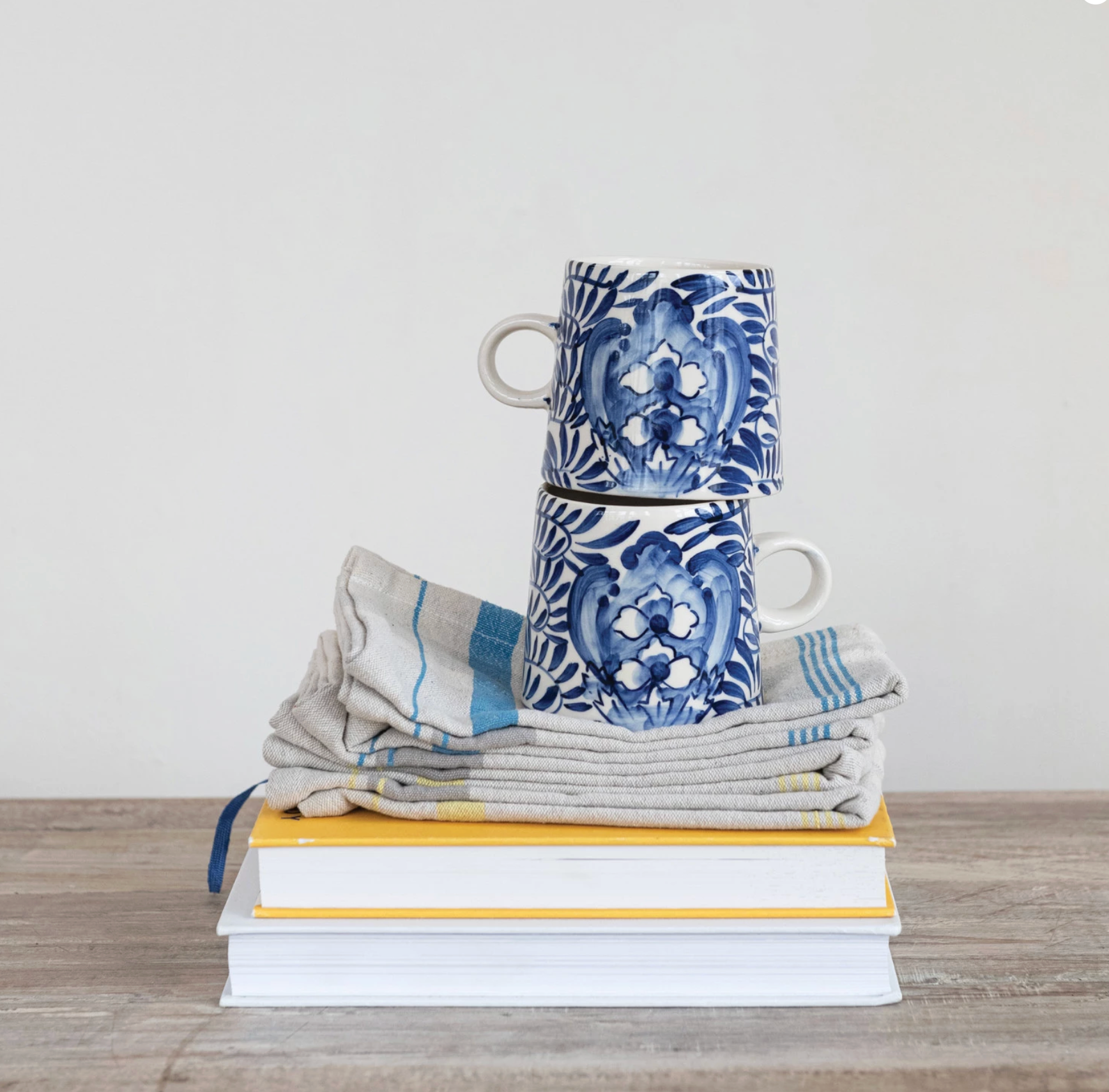 10 oz. Hand-Painted Stoneware Mug with Design, Cream Color & Blue Sold individually