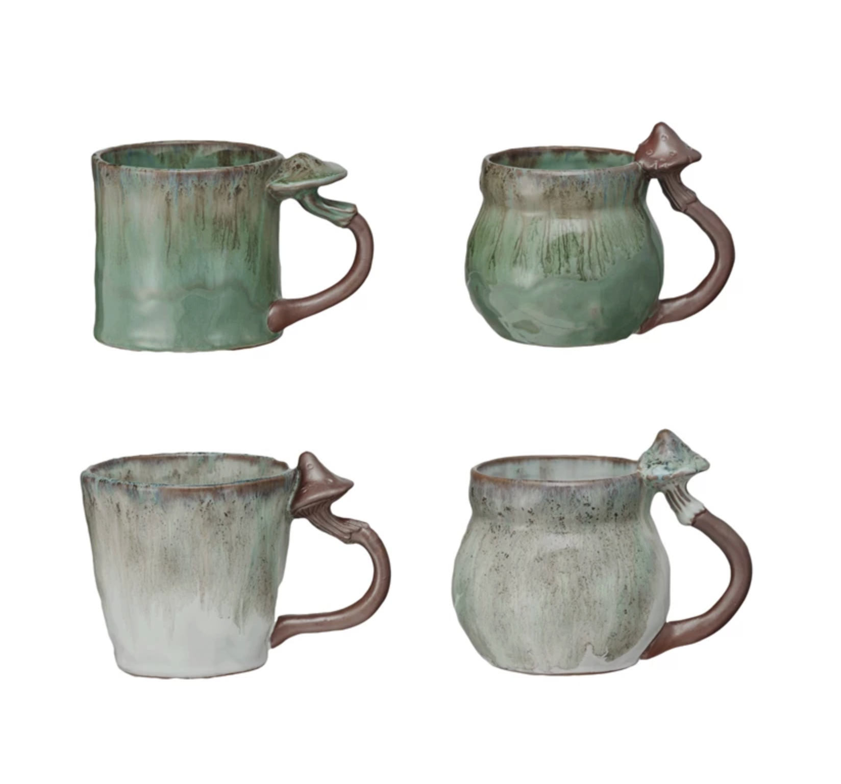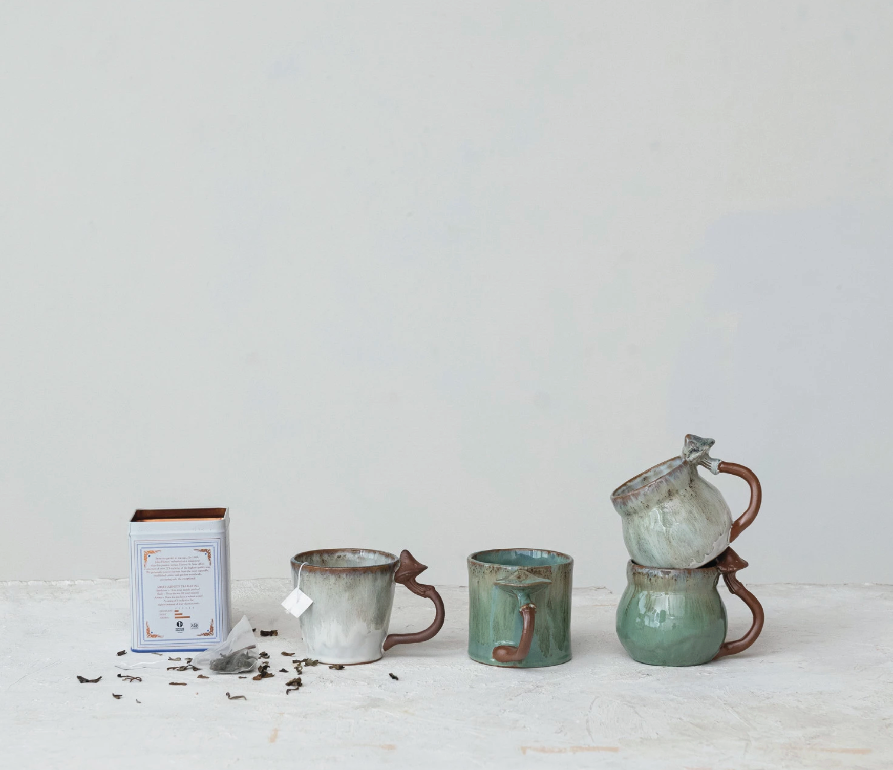 14 oz. Stoneware Mug w/ Mushroom Handle, 4 Styles (Each One Will Vary) Sold individually