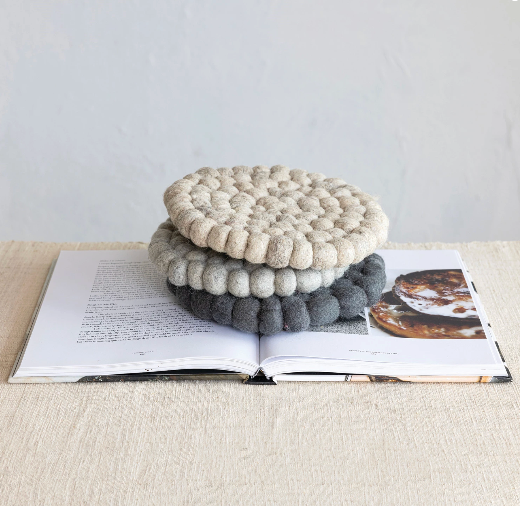 Handmade Wool Felt Ball Trivet, 3 Colors
