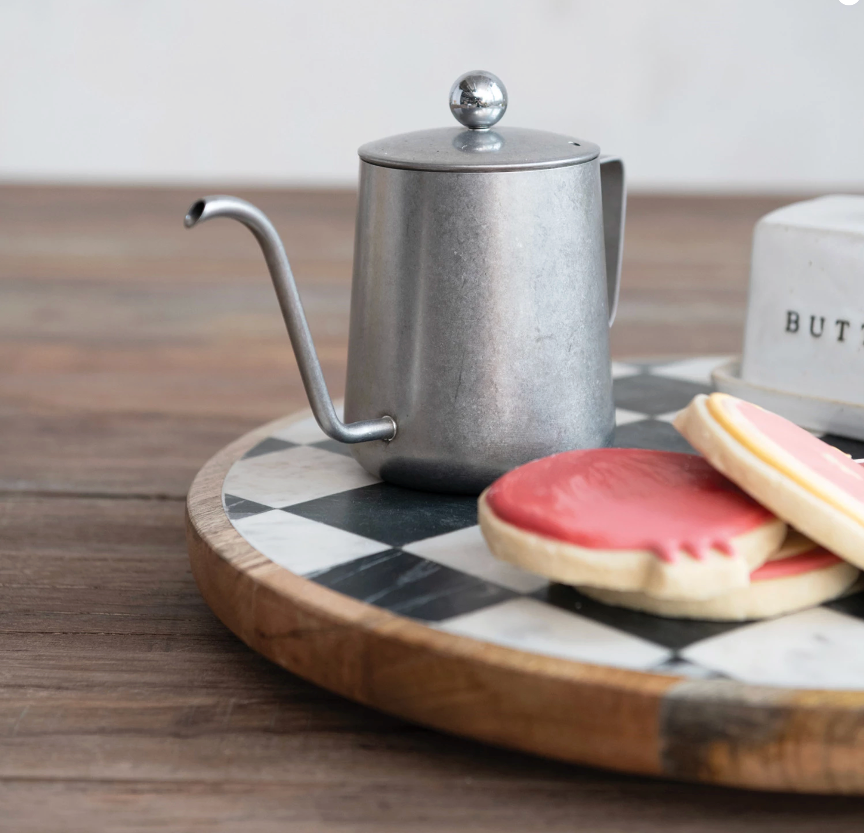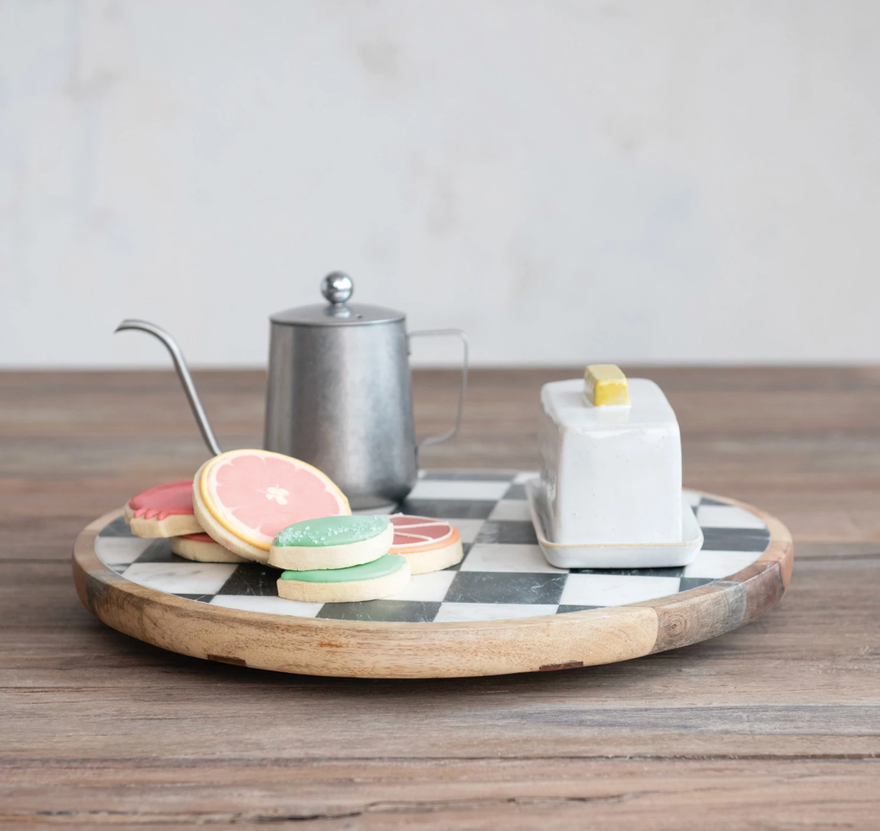 Mango Wood & Marble Check Lazy Susan, White, Black & Natural (Each One Will Vary)