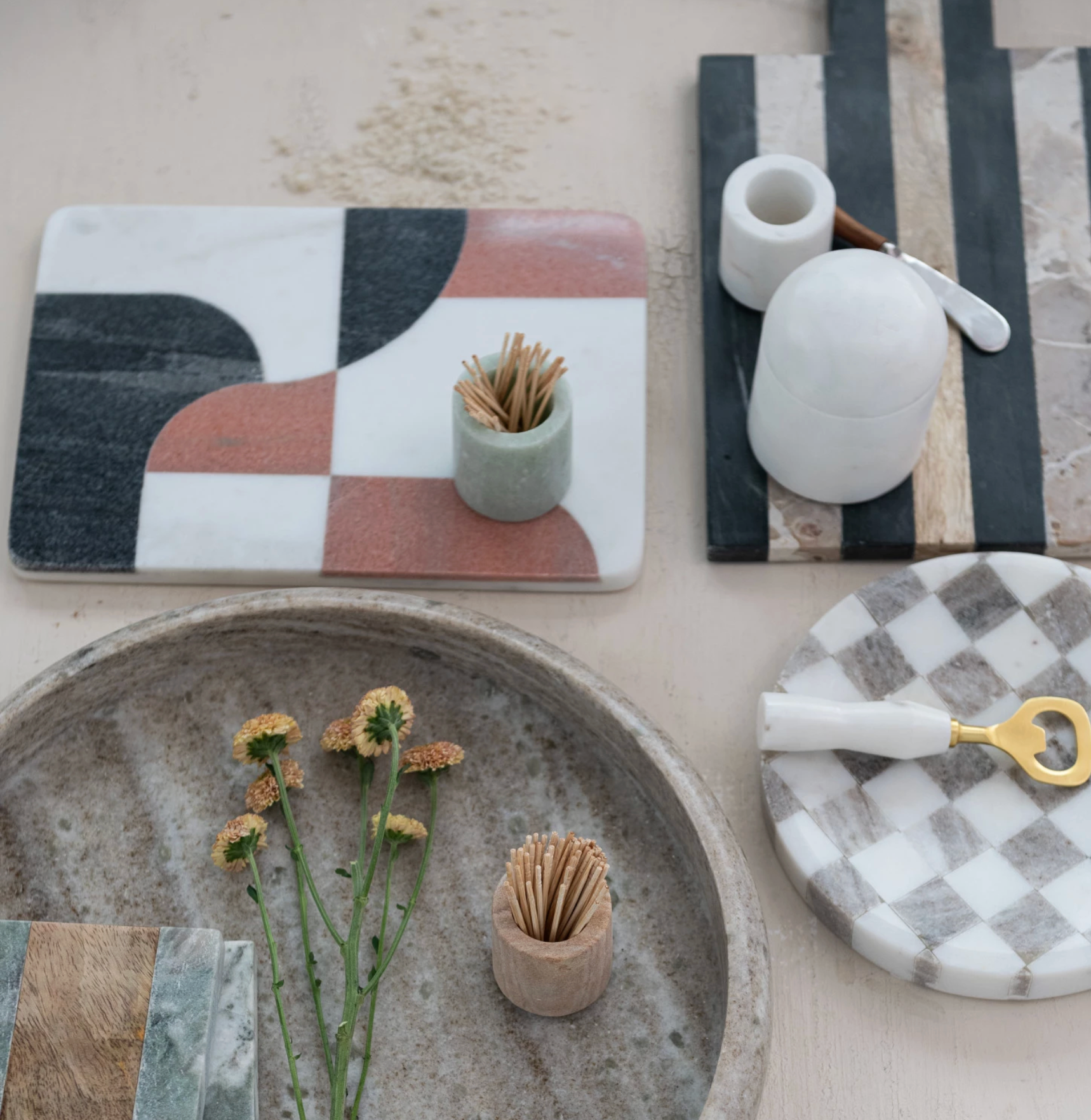 Marble Board with Leather Tie & Canape Knife, Set of 2 Tied with Jute