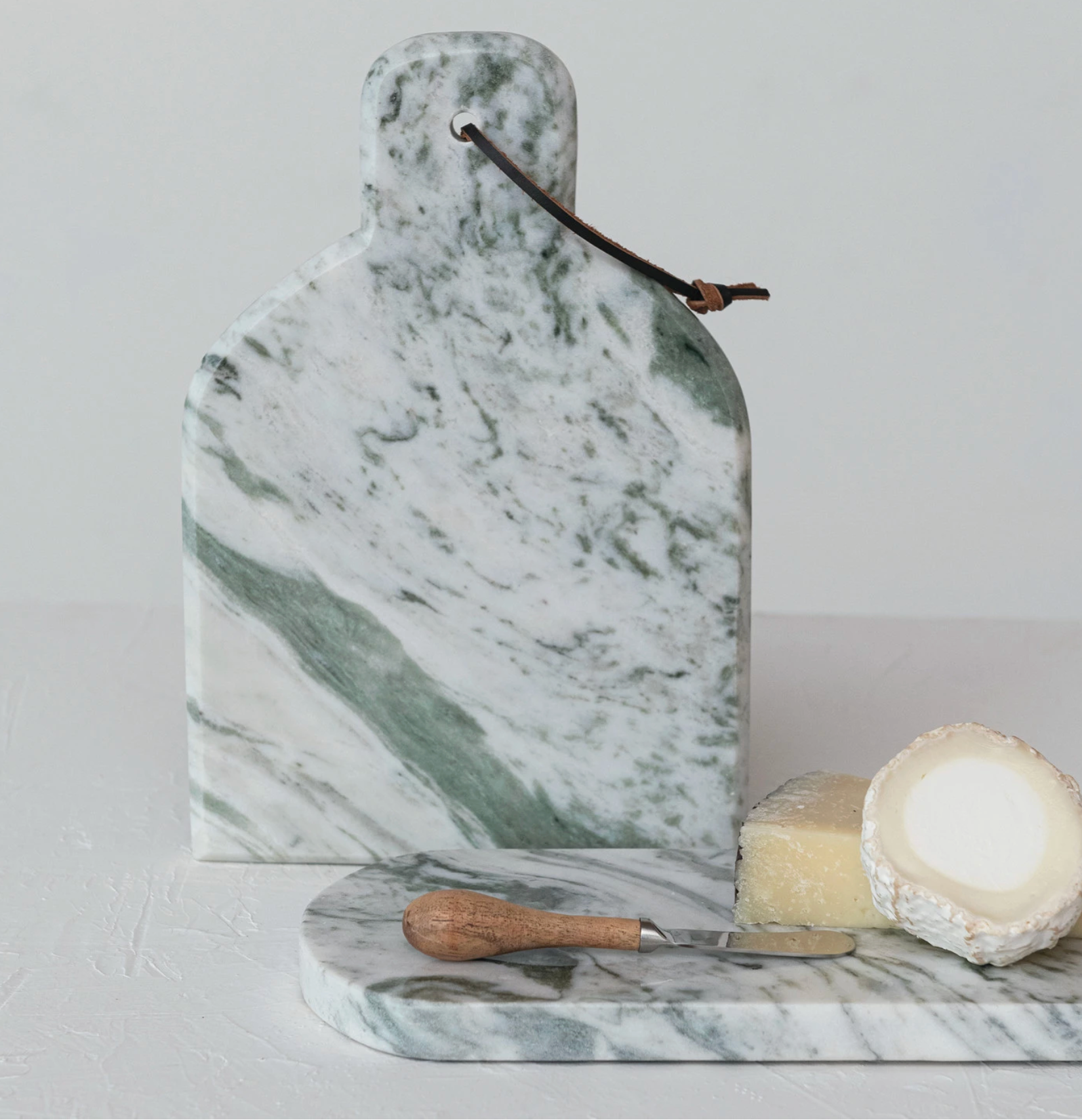 Marble Cheese/Cutting Board w/ Canape Knife, Set of 2 (Each One Will Vary)