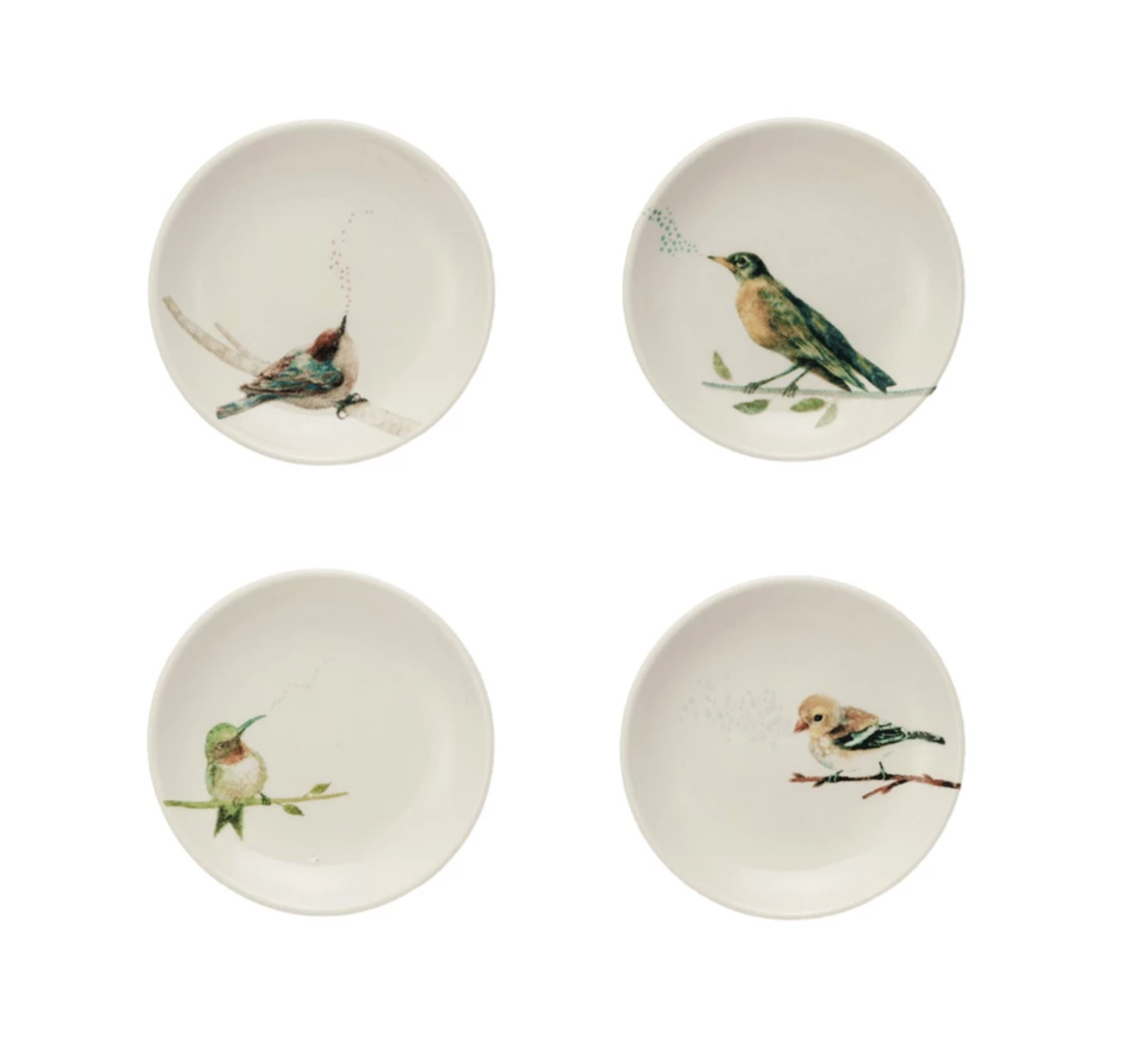Stoneware Dish w/ Bird on Branch, 4 Styles