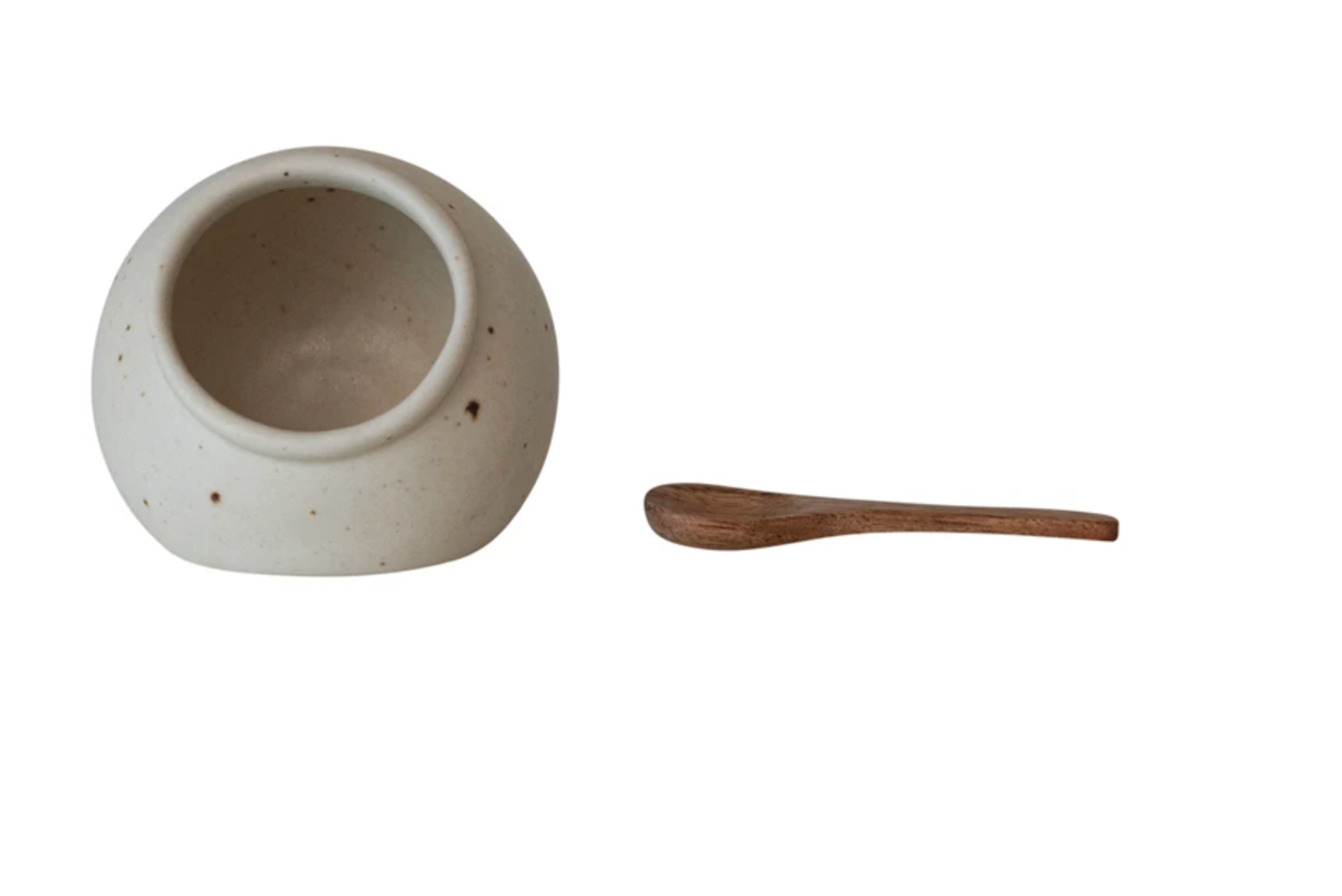 Stoneware Salt Cellar w/ Mango Wood Spoon, Set of 2
