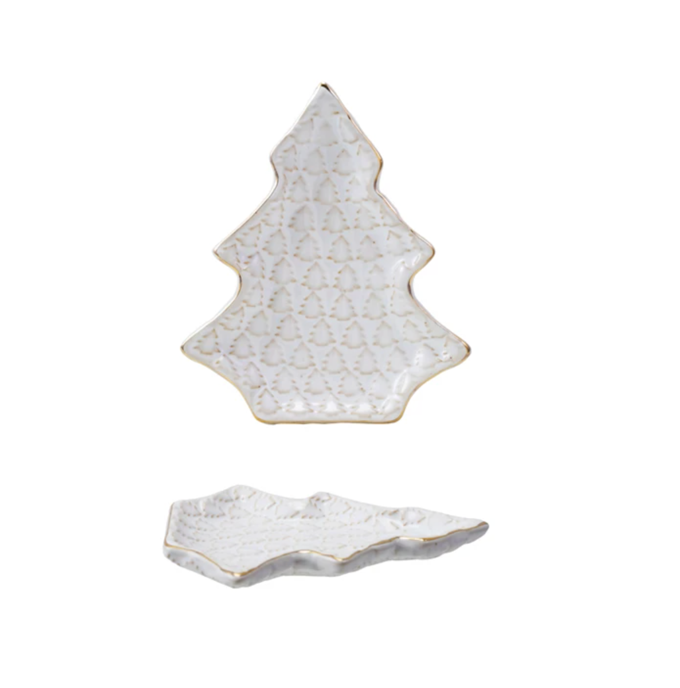 Stoneware Tree Shaped Plate with Trees (Each Will Vary)