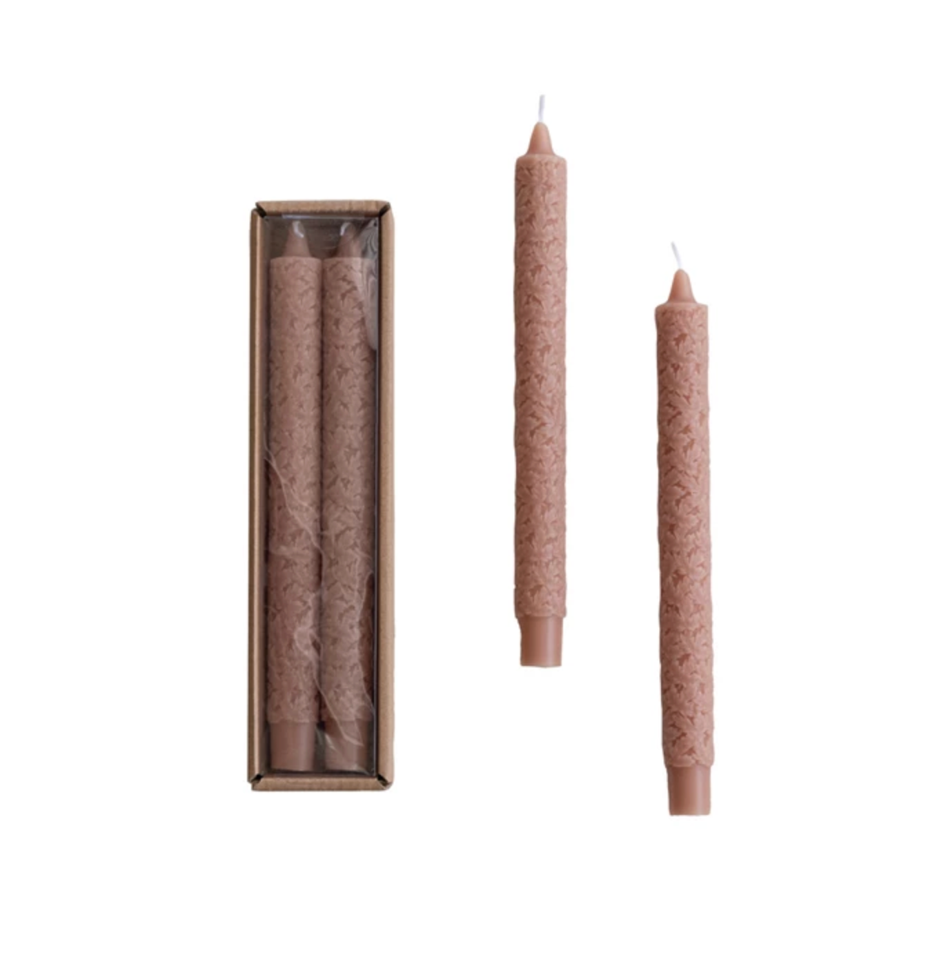 Unscented Maple Leaf Pattern Taper Candles in Box, Set of 2