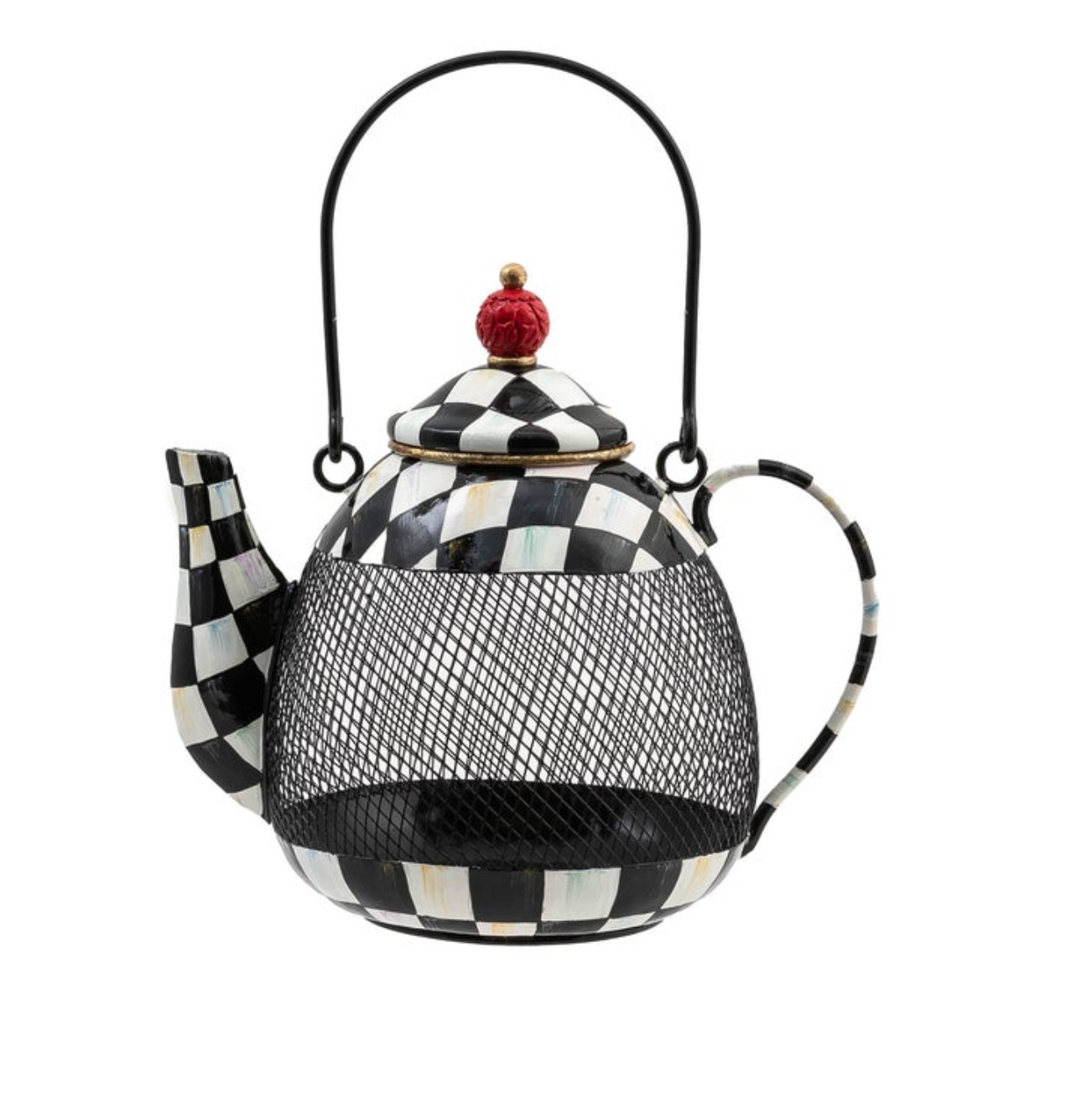 Birds of a feather will flock to the Courtly Check® Teapot Bird Feeder. It features our iconic hand-painted tea kettle silhouette with a wire mesh center, and the lid lifts off for adding birdseed.
