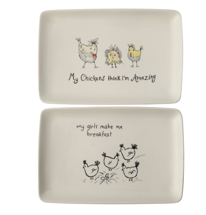 Platter with Chickens and Saying, 2 Styles