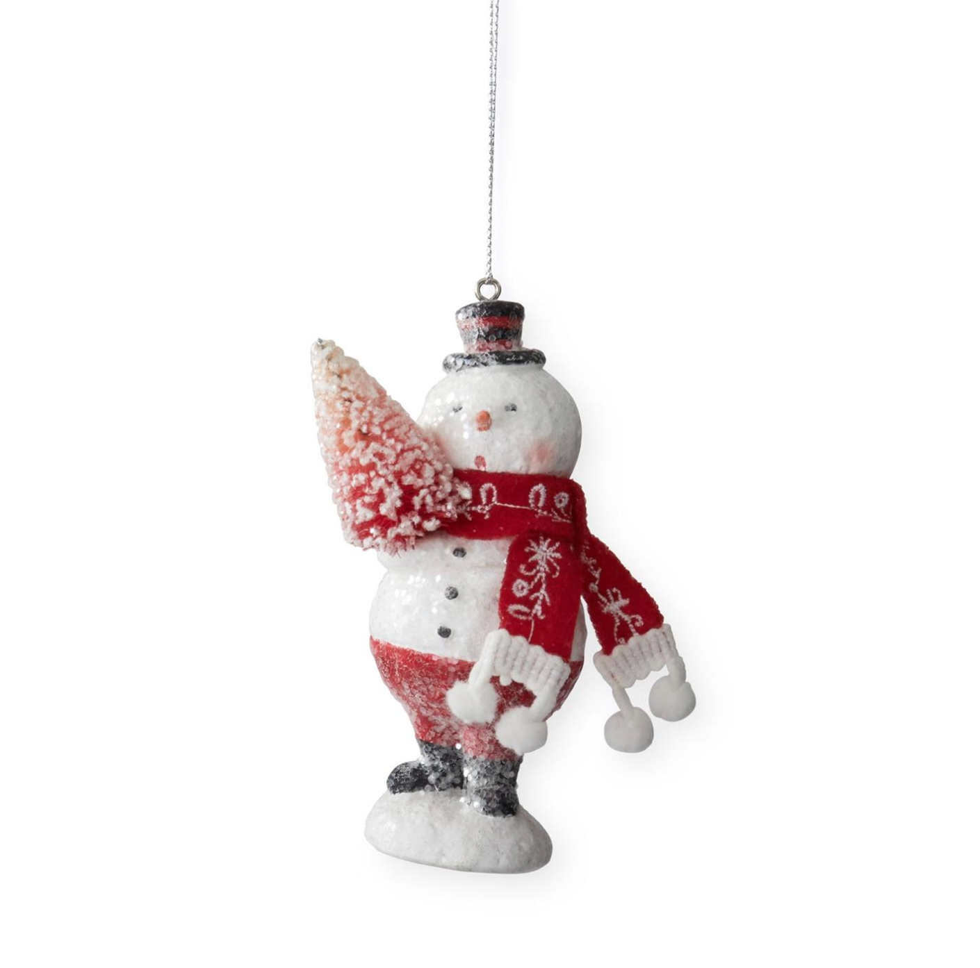 4.25 Inch Glittered Snowman w/Tree & Scarf Ornament