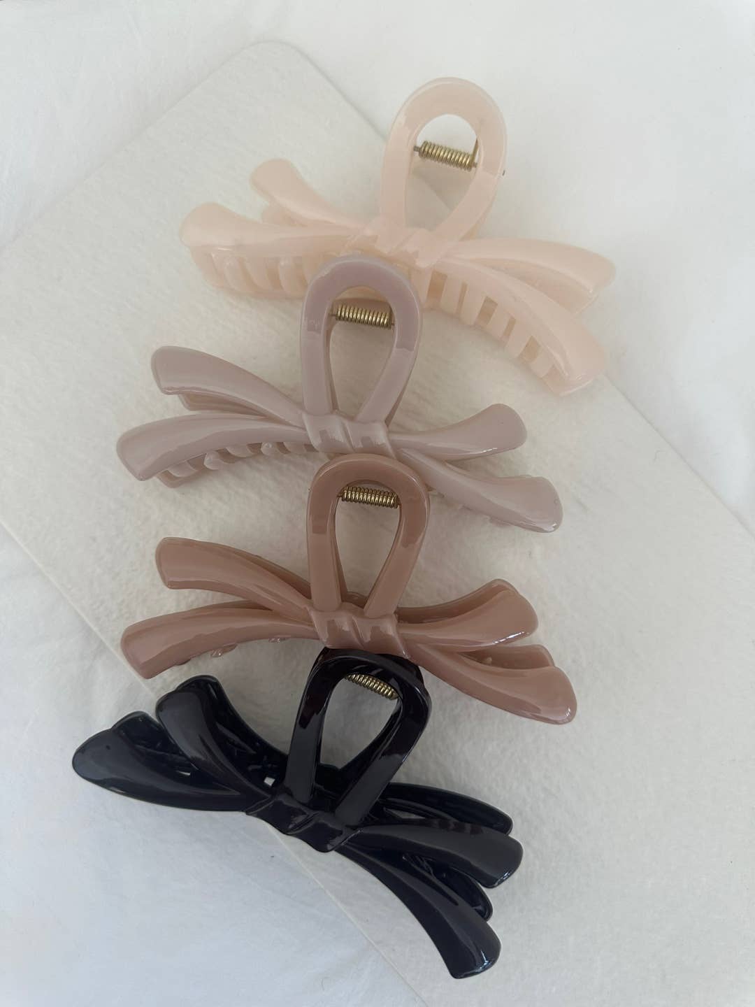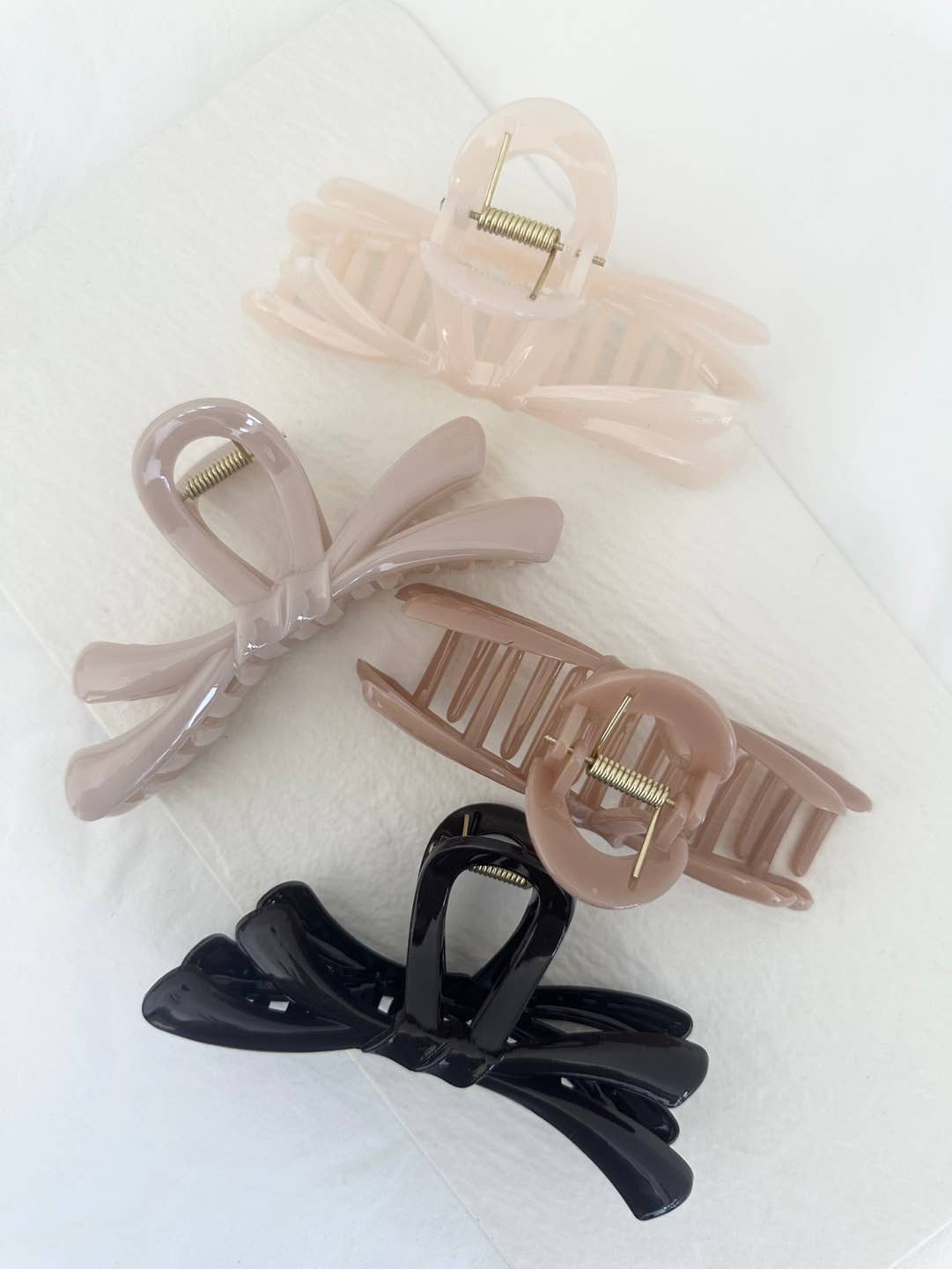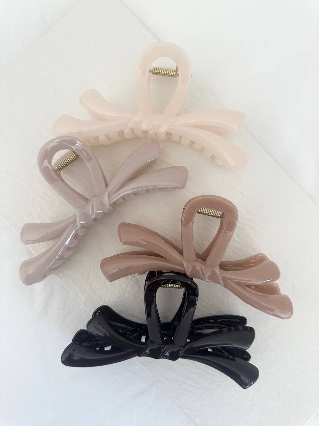 This bowknot claw clip is an elegant and chic hair accessory designed with a ribbon-inspired shape. Featuring a glossy finish, it offers a sleek and polished look, perfect for adding a stylish touch to any hairstyle. The open-frame bow structure adds a delicate and feminine charm, while the sturdy claw mechanism ensures a strong grip, keeping hair securely in place.