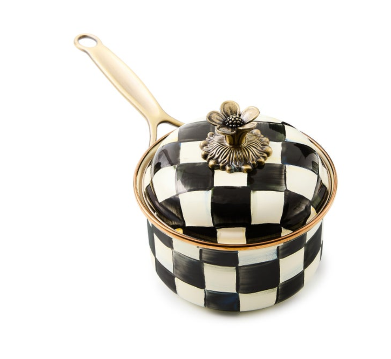 Cook up just a little bit of something in our Courtly Check® Enamel 1 Quart Saucepan. It’s just the right size for simmering savory sauces or stirring up smaller servings. And to top it all off, a charming blossom sprouts up to serve as a knob, as unique as it is useful.