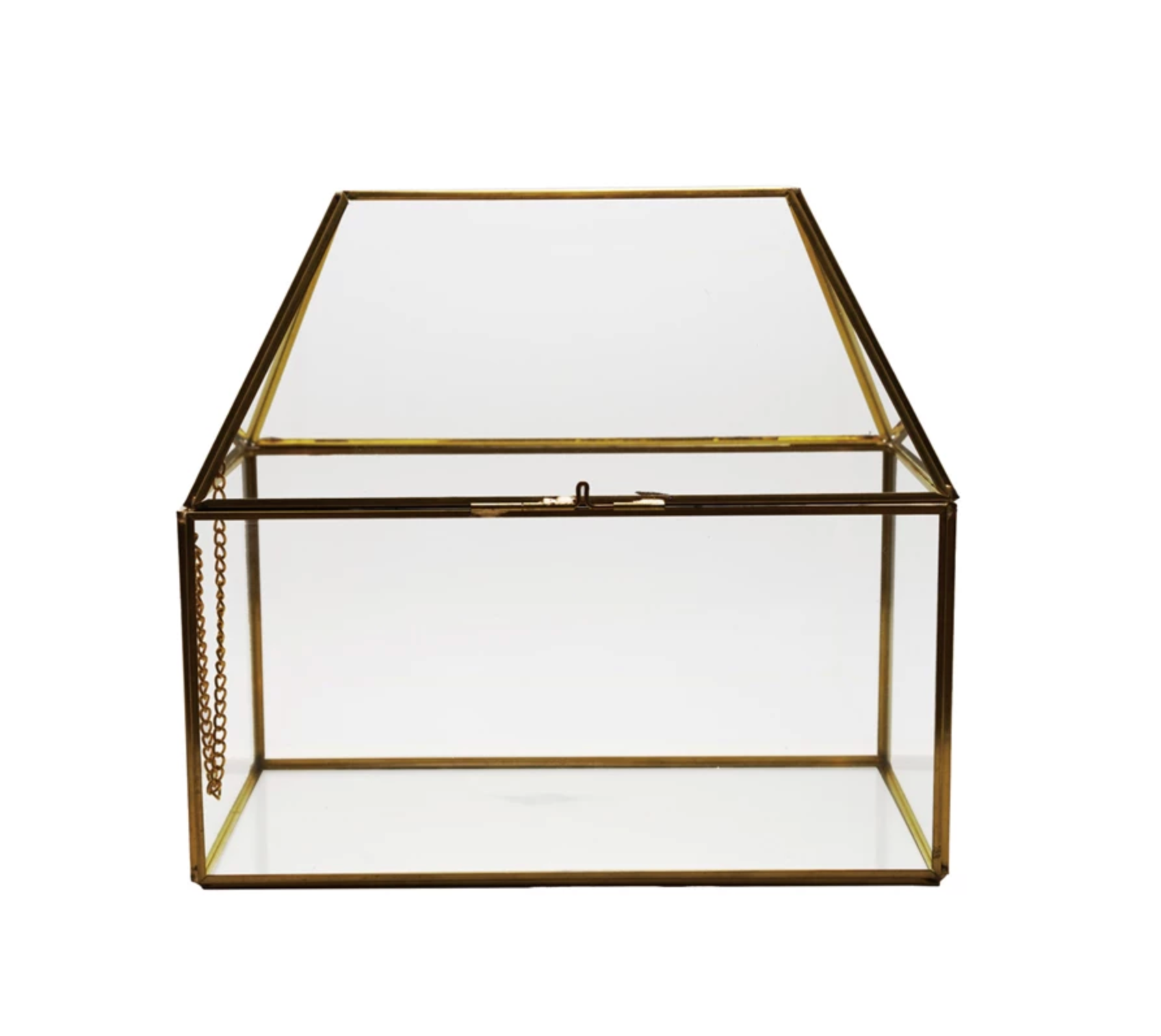 Decorative Metal & Glass House Shaped Display Box, Gold Finish