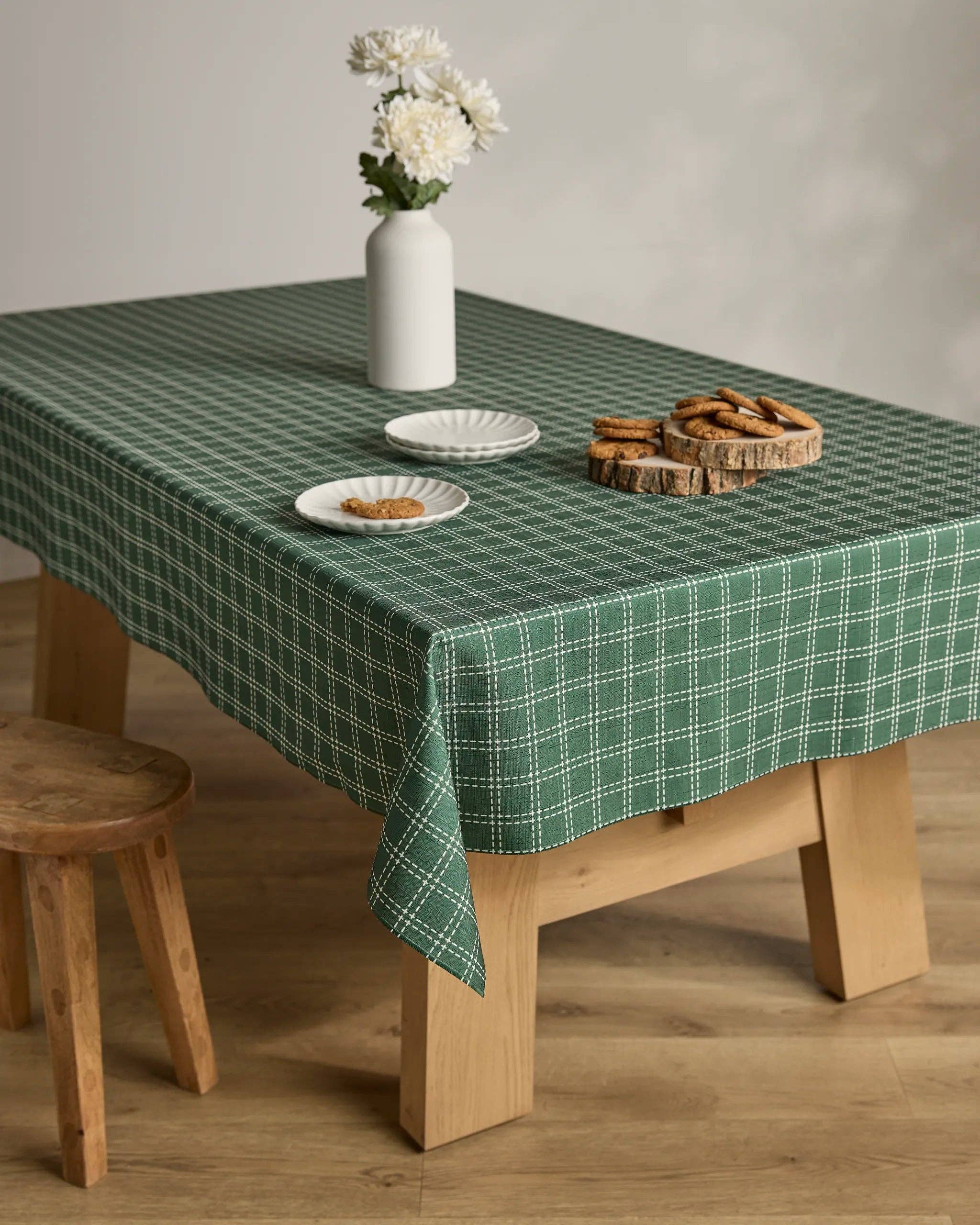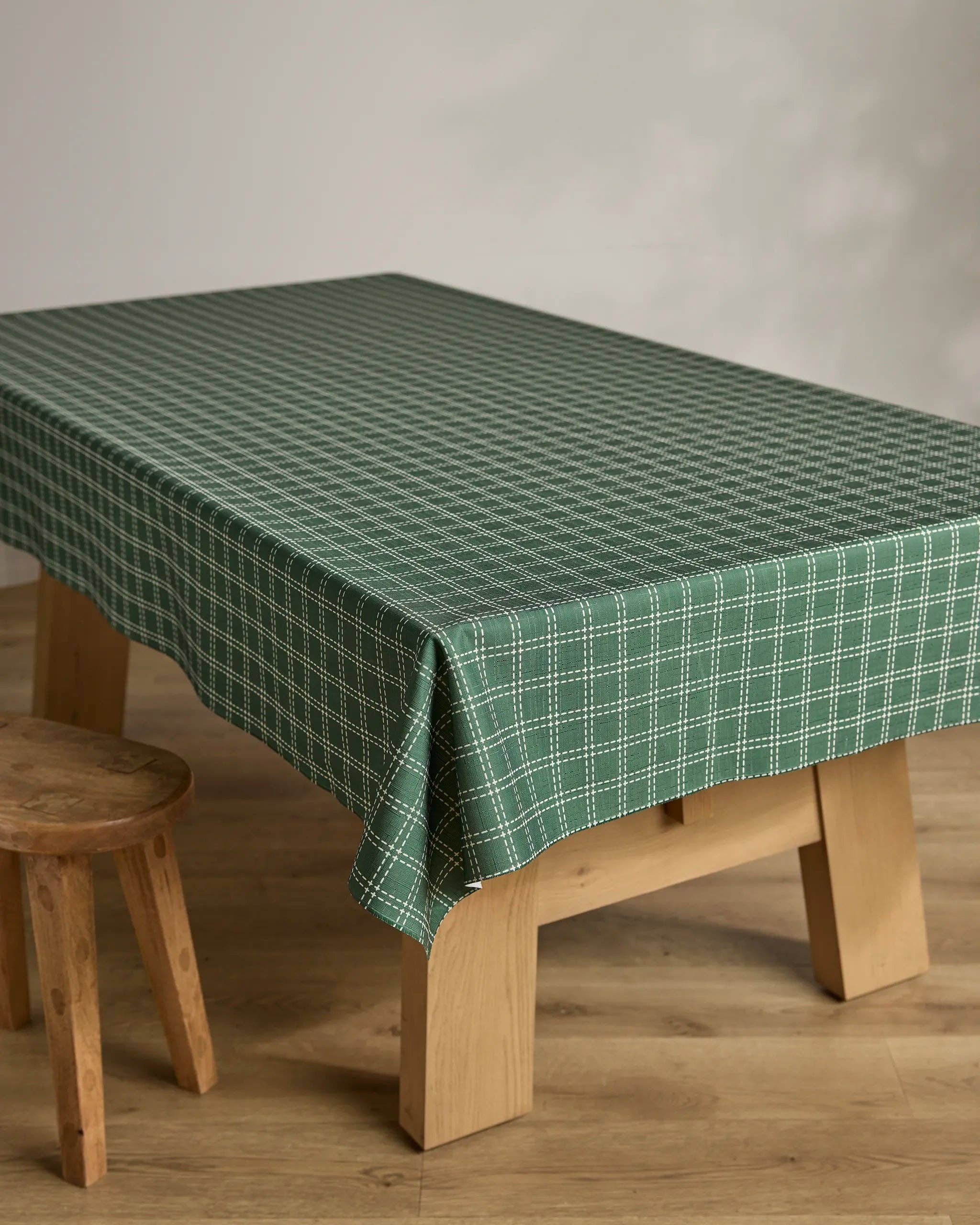 Tablecloth The Table — Covered. Made for meaningful gatherings and everyday meals, the Geometry Tablecloth brings beauty and ease to the center of your home. Lightweight, soft, and stain-resistant, it’s made from 100% post-consumer recycled materials and designed to drape effortlessly—no ironing, no fuss. Whether you’re dressing up a celebration or just elevating breakfast, this tablecloth brings intention to the table. Medium 60" x 90" SKU: TC- * ♺ Made from post-consumer recycled materials * Two sizes: 60” x 90” and 62” x 108” * Soft, lightweight, and stain-resistant * Designed for both special occasions and everyday use ... Gather well. From busy weeknight dinners to long holiday celebrations, our Tablecloth was created to make your space feel warm, elevated, and entirely your own. Made using less water and fewer resources than traditional fabrics, it’s a functional piece that’s as easy