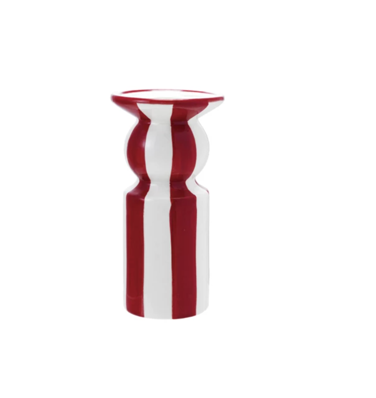 Hand-Painted Ceramic Striped Taper Holder, Red & White