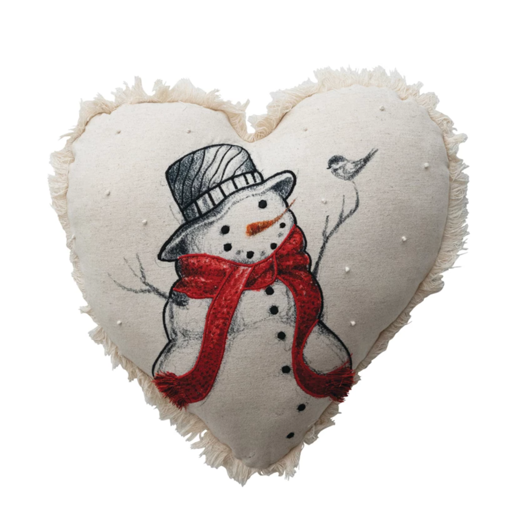 Heart Shaped Pillow with French Knots & Fringe