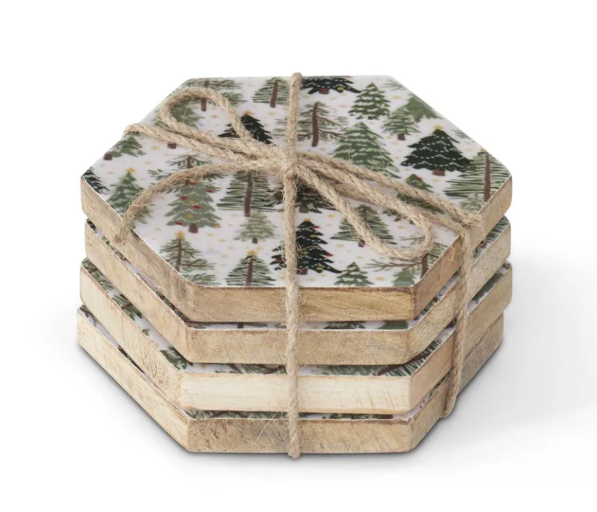 Hexagon Christmas Tree Enameled Coasters - Set of 4