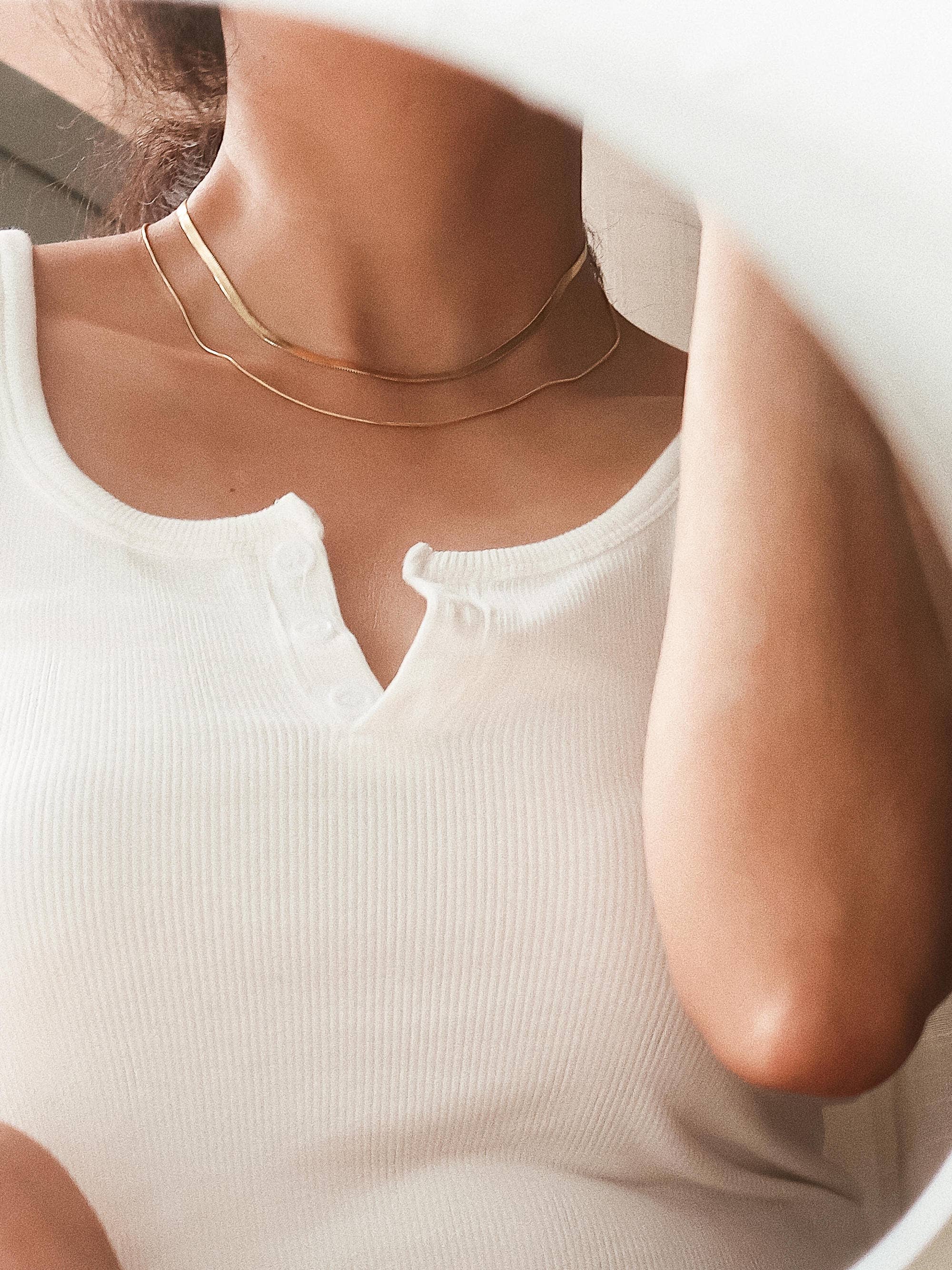 18K Gold Non-Tarnish Layered Flat Snake Chain Necklace
