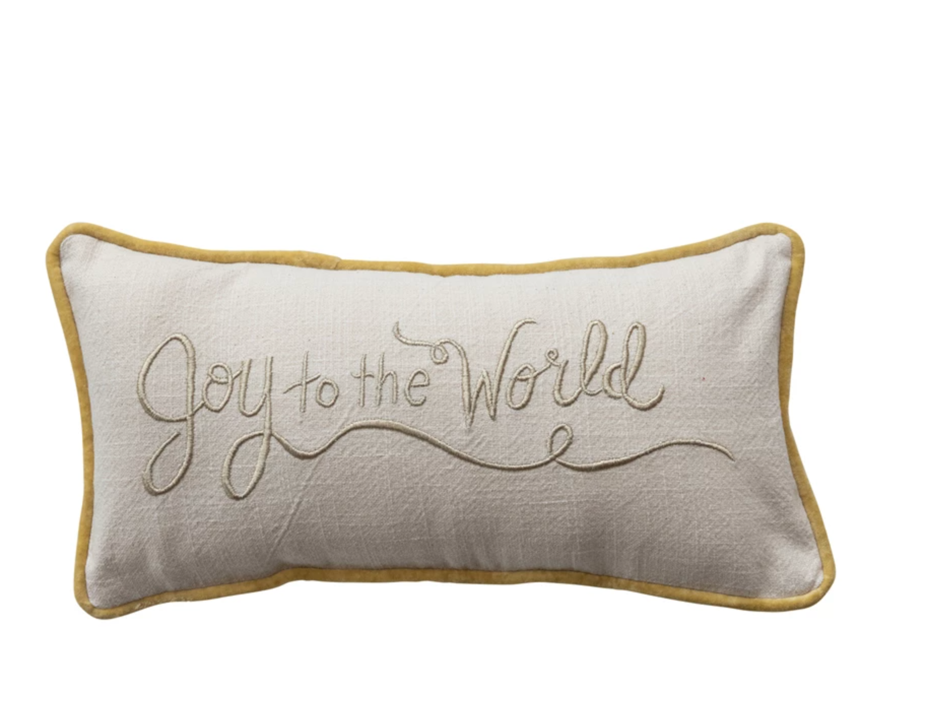 Lumbar Pillow with Embroidery, Piping & Velvet Back "Joy to the World"