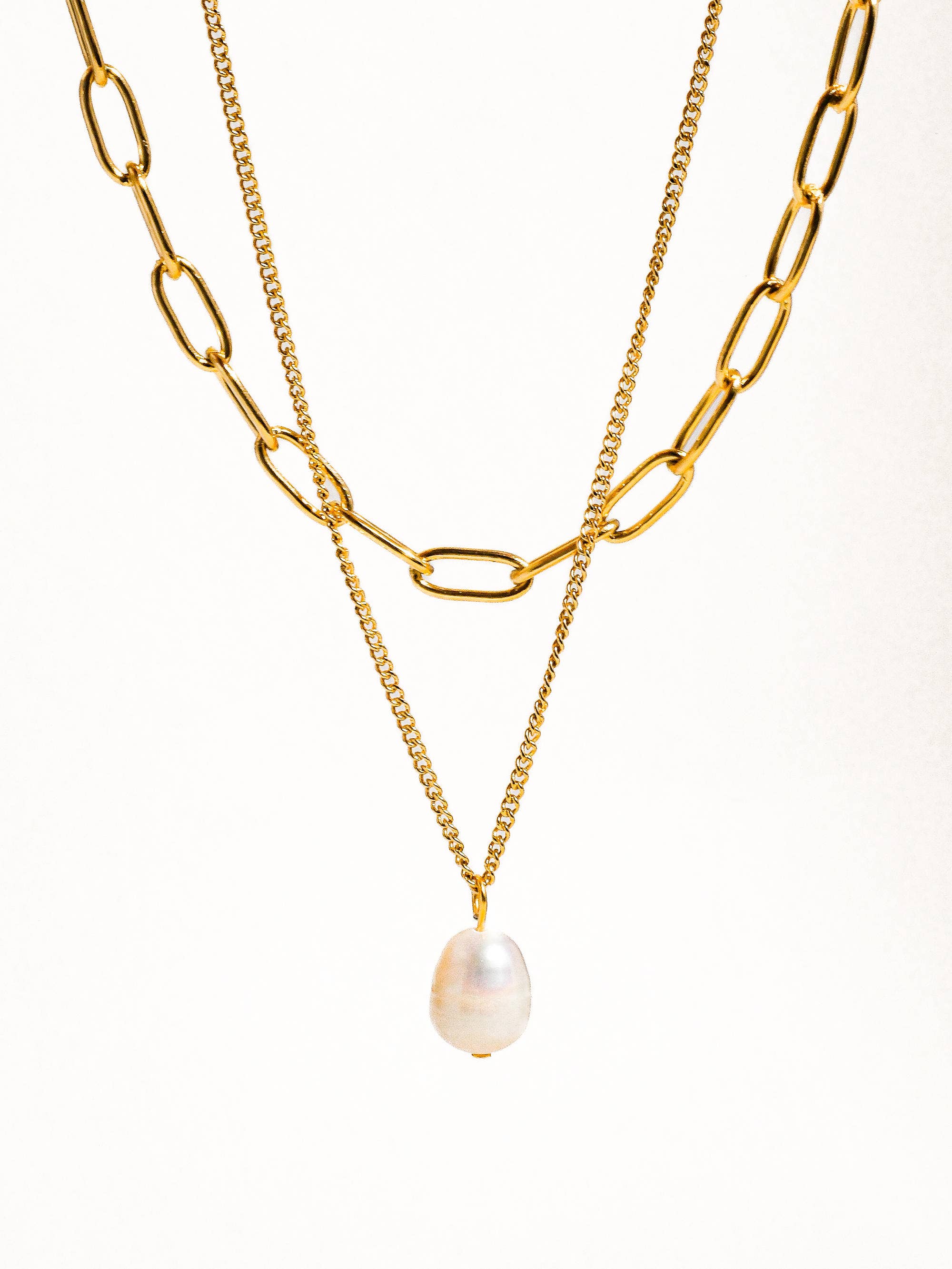 Percy 18K Gold Non-Tarnish Layered Chain Pearl Necklace