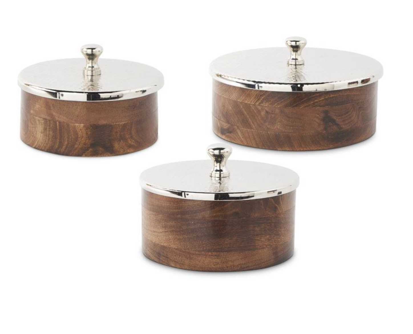 Round Wood Boxes w/Hammered Lids