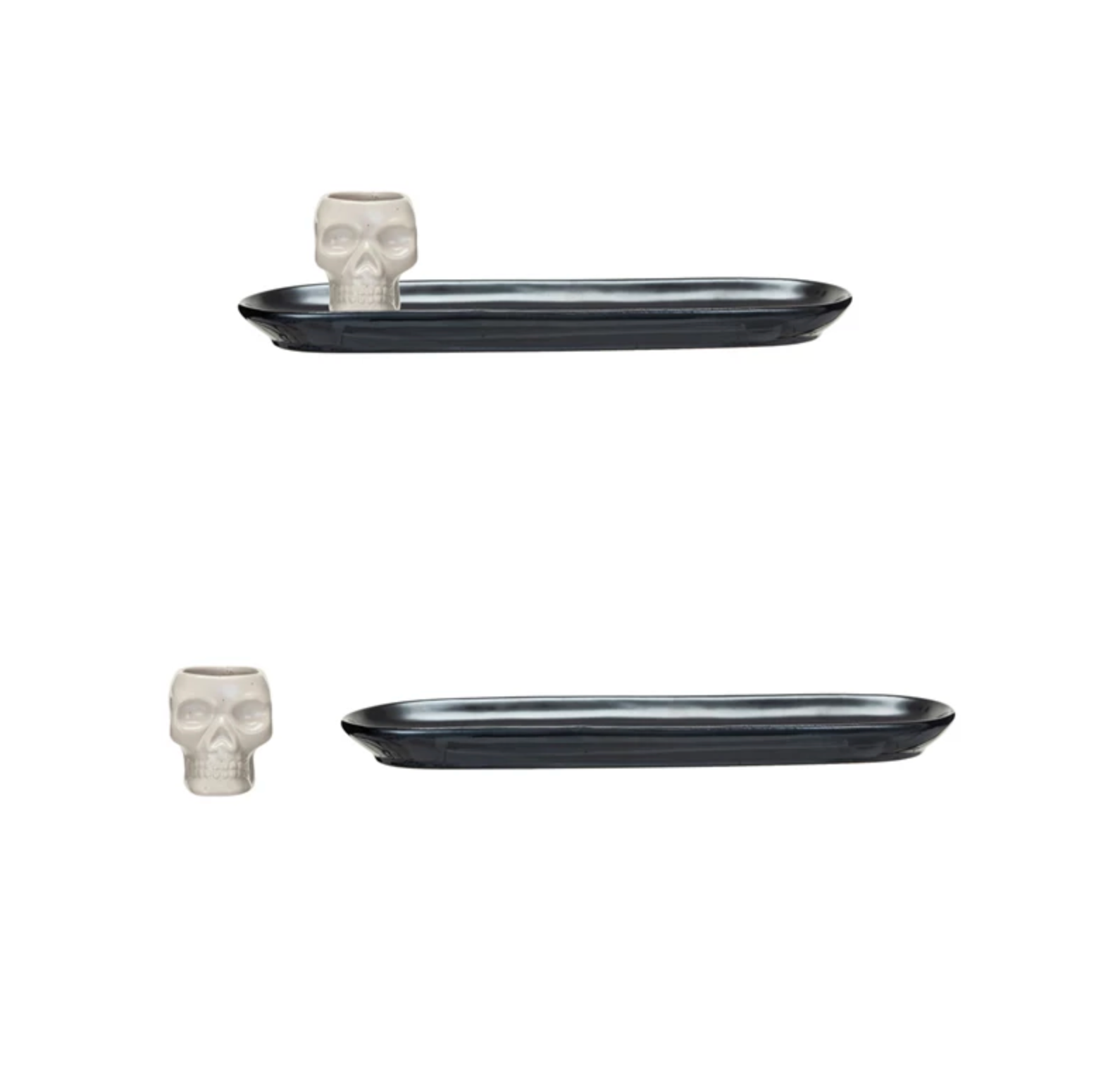 Stoneware Dish w/ Skull Shaped Bowl, Black & White Speckled, Set of 2