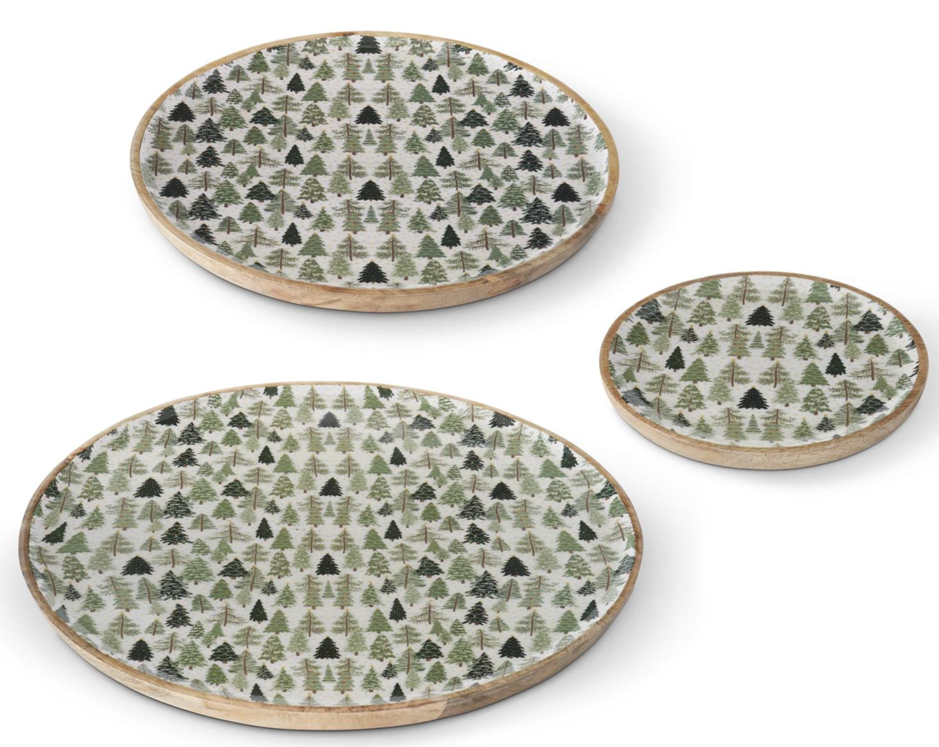 Wood Tray w/Christmas Trees Enameled