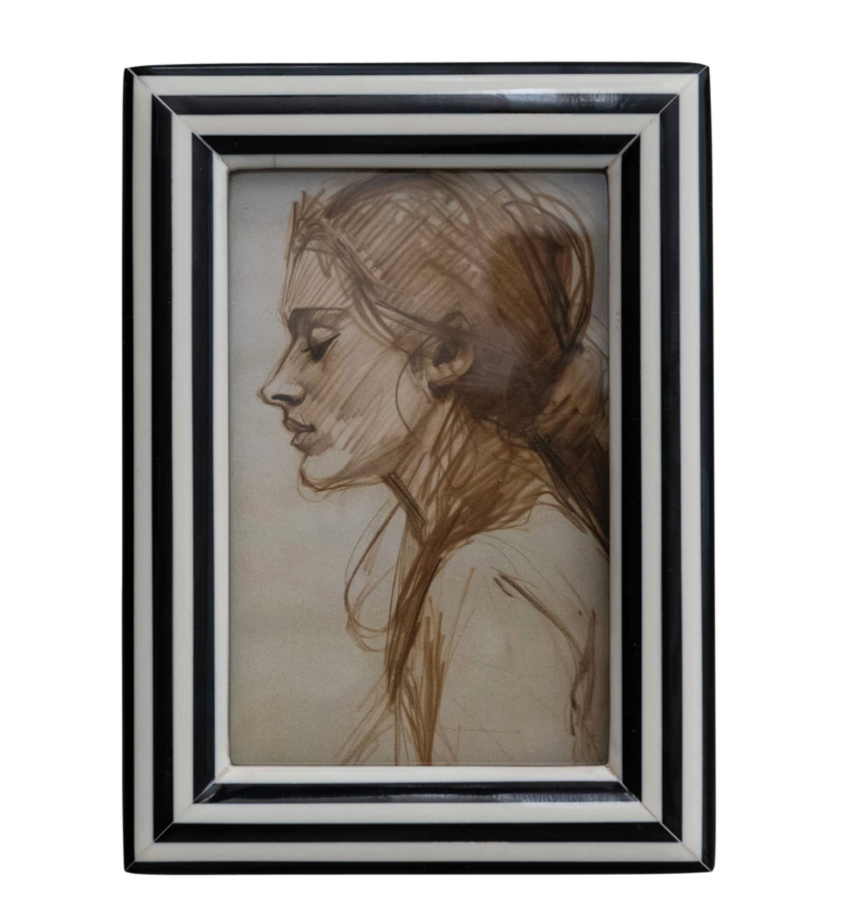Striped Photo Frame, Black & White (Holds 4" x 6" Photo)
