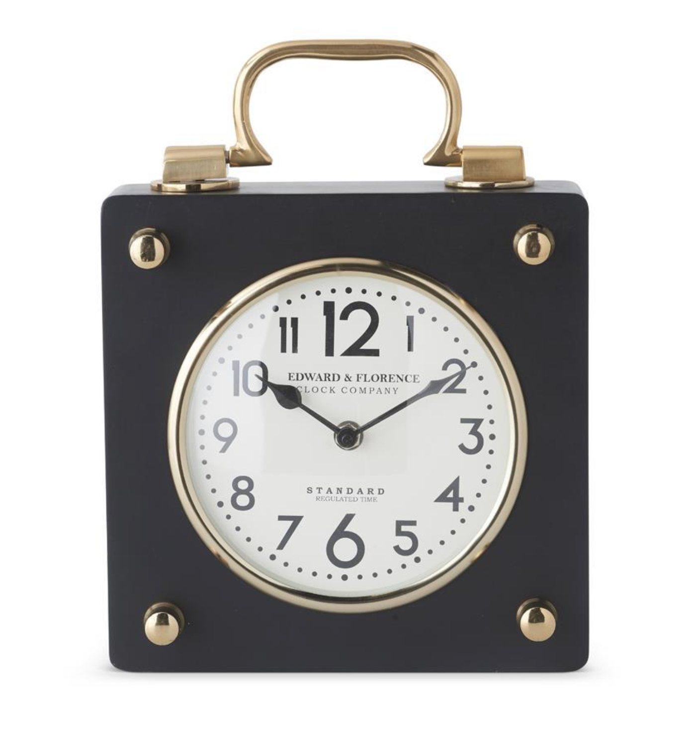 11.5 Inch Black and Brass Square Metal European Clock