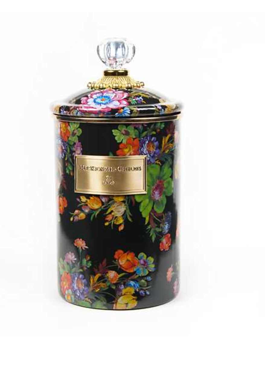 Flour, sugar, and coffee might seem the most obvious of contents with which to fill a set of three Flower Market Canisters, but the possibilities are endless! Keep them in the kitchen with coffee beans and tea bags, cookies and candies, or dog biscuits and birdseed-or invent new uses around the house. Perfect for cotton balls and swabs in the bathroom, pens and pencils in the office, or knickknacks and doodads in the kids’ room. Color glazed in black, green or white, each Flower Market Enamel Canister is decorated with hand-applied fanciful botanical transfers that recall a lush English garden in the peak of summer. These canisters stand handsomely alone or harmonize delightfully in a multicolor set.