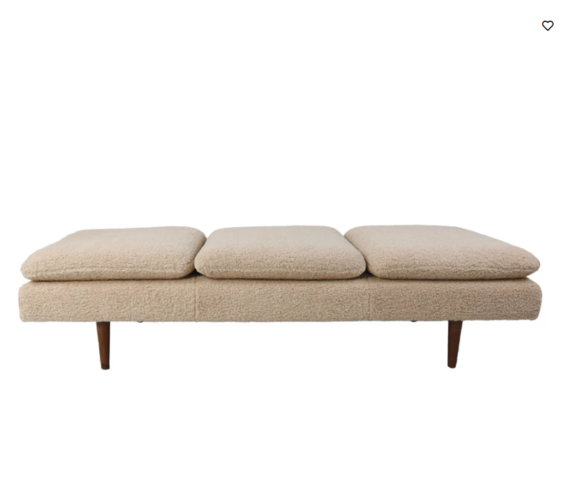 Bouclé Fabric Upholstered Daybed w/ Rubberwood Legs, KD