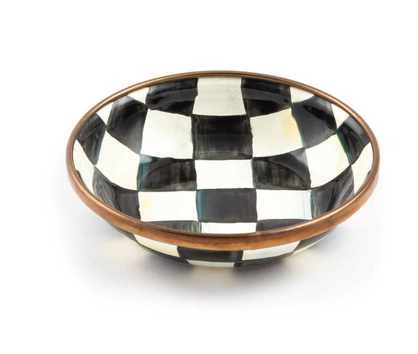 Designed to fit perfectly in our acacia wood bread & oil board, the Courtly Check® Enamel Small Dish is made of hand-painted enameled steel. On its own, it’s sized just right for small bites.