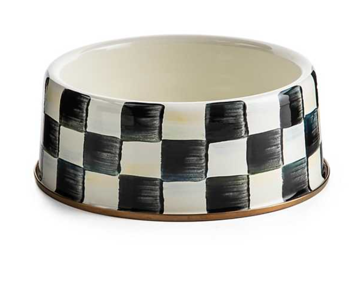 This season, it’s all about checks for Spot! For your furry friends, choose the Courtly Check® Large Pet Dish. The heavy-gauge steel underbody is strong enough to withstand the mealtime antics of the hungriest hounds, and hand-painted Courtly Checks® are fashionable enough for the choosiest canines. With a subtle jewel-tone palette woven by an artisan’s brush through the glossy, hand-painted, high-contrast checks, we’ve yet to find a pet that doesn’t look good with Courtly Check.