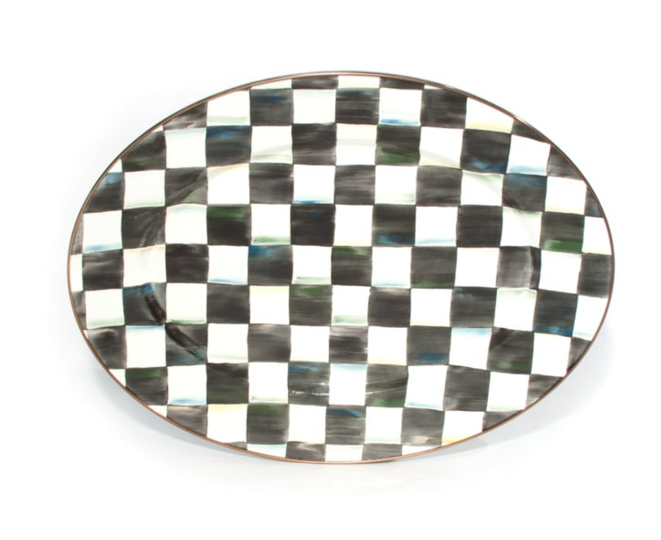 A welcome gift for the Courtly Check® collector, the Medium Courtly Check® Enamel Oval Platter is a great addition to the dinner or buffet table. Hand-painted checks reveal a spectrum of accent colors. Steel underbody and bronzed stainless steel rim.
