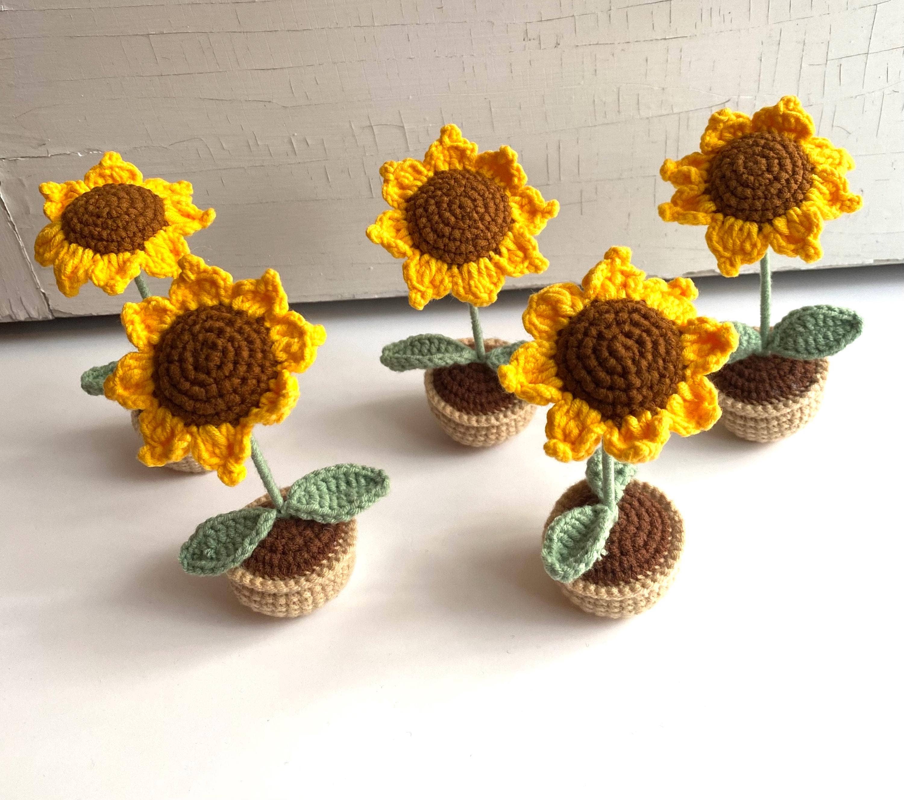 Crocheted Sunflower Pot, Hand-stitched Sunflower in the Pot