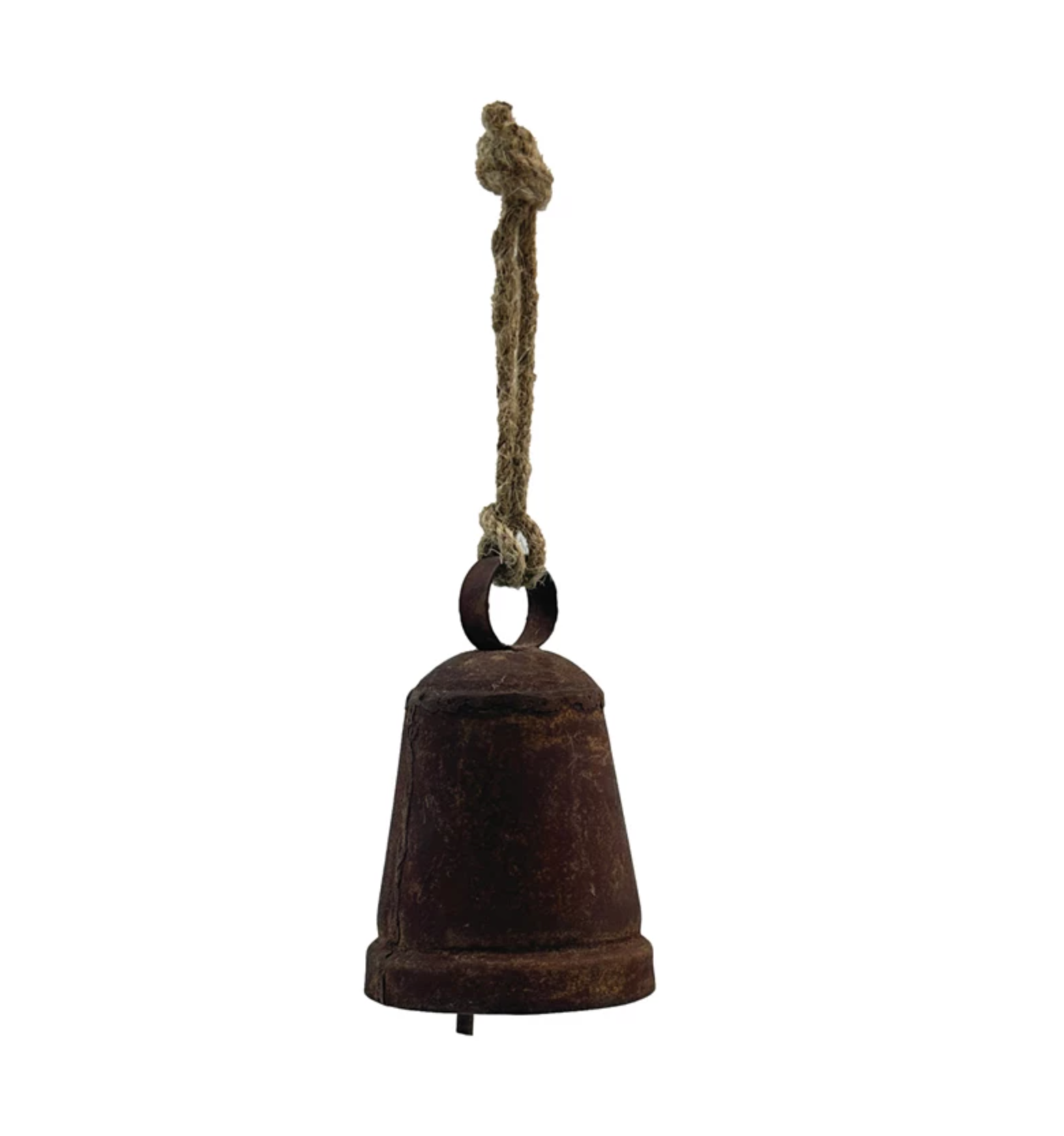 Metal Bell Ornament with Jute Hanger, Distressed Rust Finish