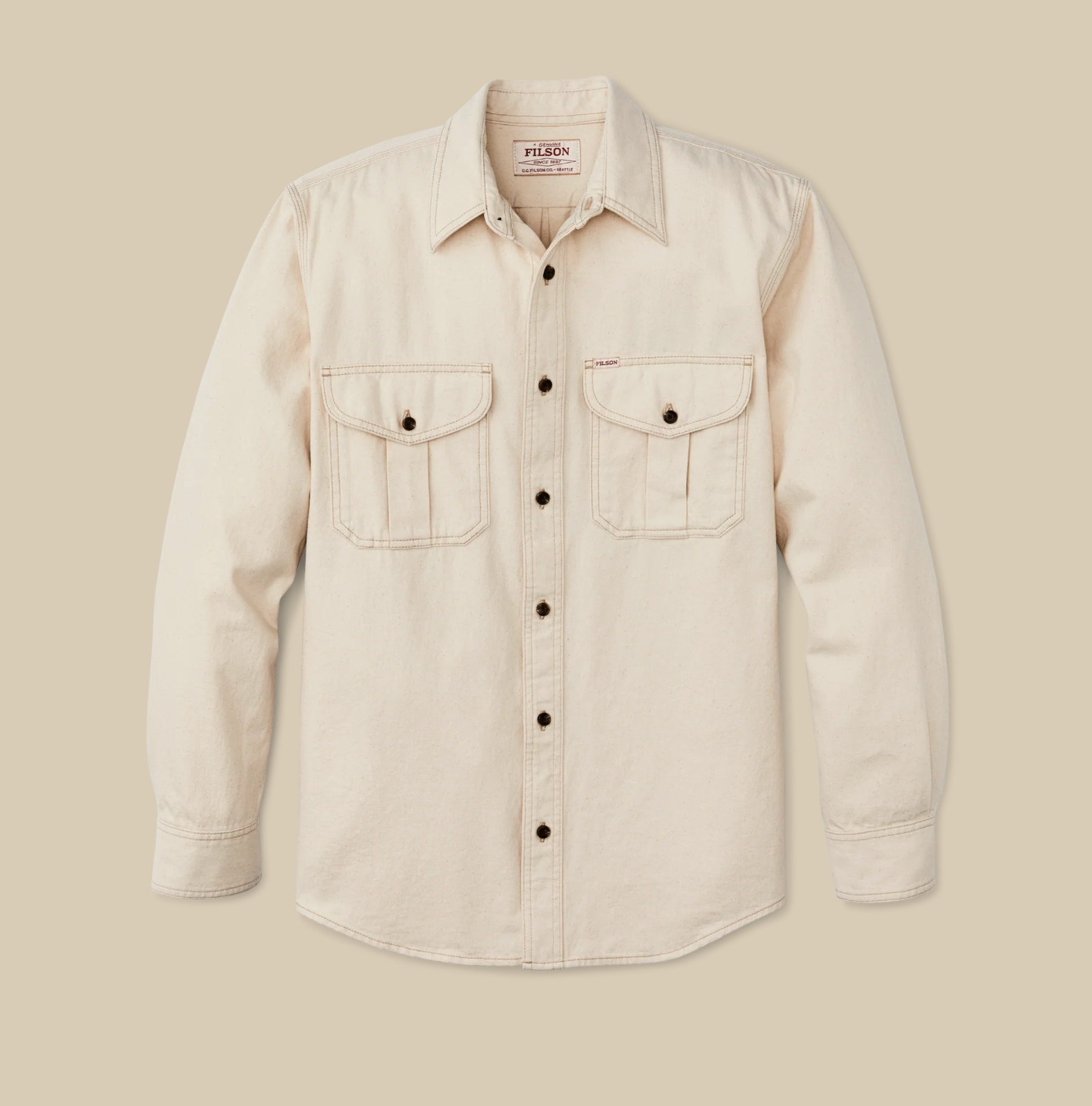 This durable classic is patterned after our iconic Alaskan Guide Shirt, a trusted favorite of bush pilots, ranchers, and sportsmen for thirty years. The 7.5-oz. fabric shares the same 2x1 twill weave and durable strength as denim, differing only in that the warp and weft yarns are the same color. This fabric was minimally processed, with tiny bits of the seeds left in the yarns for a rustic effect. Like our original Guide Shirt, the fit is a bit roomy with a center-back pleat for ease of motion. Buttons secure the front, cuffs, and chest-pocket flaps.
