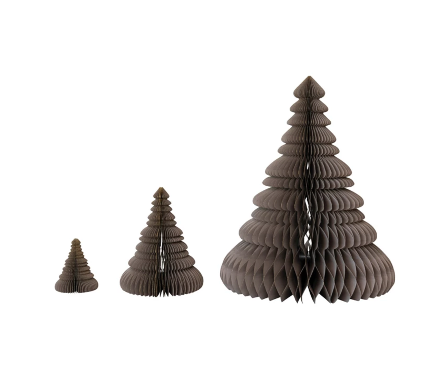 Paper Folding Honeycomb Trees w/ Gold Glitter, Set of 3