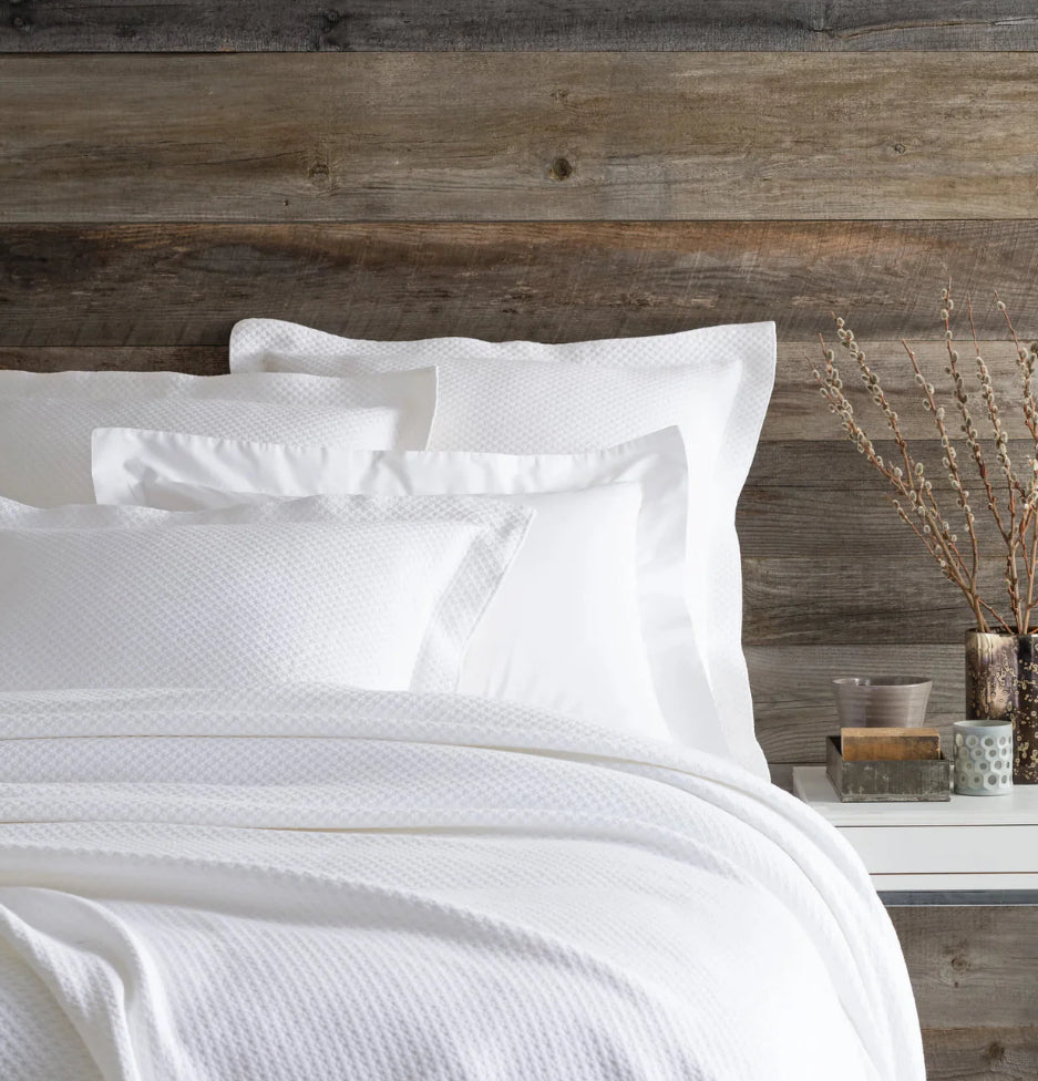 A latticework of tiny tone-on-tone diamonds spills over this matelass� coverlet, in the softest prewashed cotton.