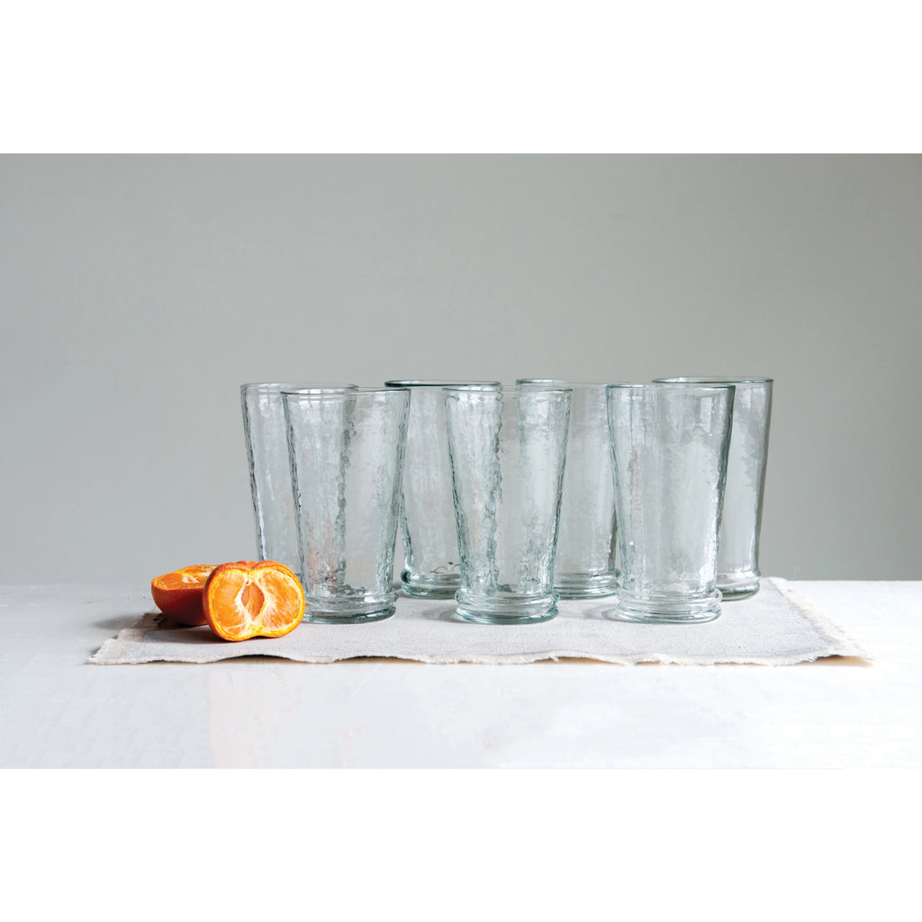 Made from recycled glass these beautiful handcrafted glasses are the perfect addition to any home. They can be used for casual get togethers or used for formal dinners.