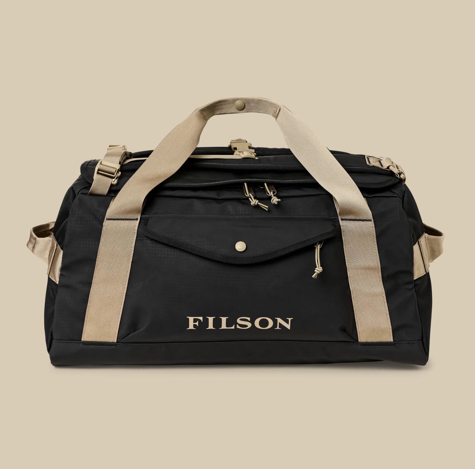 Sized for multi-day excursions, our new Scout Duffle is built to protect gear through any weather. It's made with 100% recycled polyester fabrics treated with thermoplastic polyurethane (TPU) to prevent water entry. The main material is 300D ripstop, and the bottom boot 600D Oxford matte for added durability.