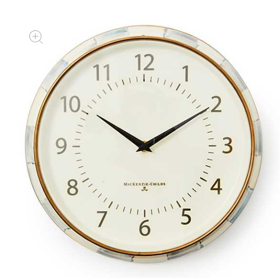 Sync your schedule to MacKenzie-Childs time with the Sterling Check® School Wall Clock. It has the look of a classic school clock with printed numbers on the face and hand-painted Sterling Check on the side.
