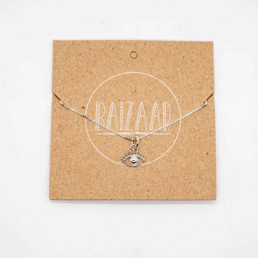 Sterling silver necklace with delicate evil eye pendant. Chain measures 18 inches.